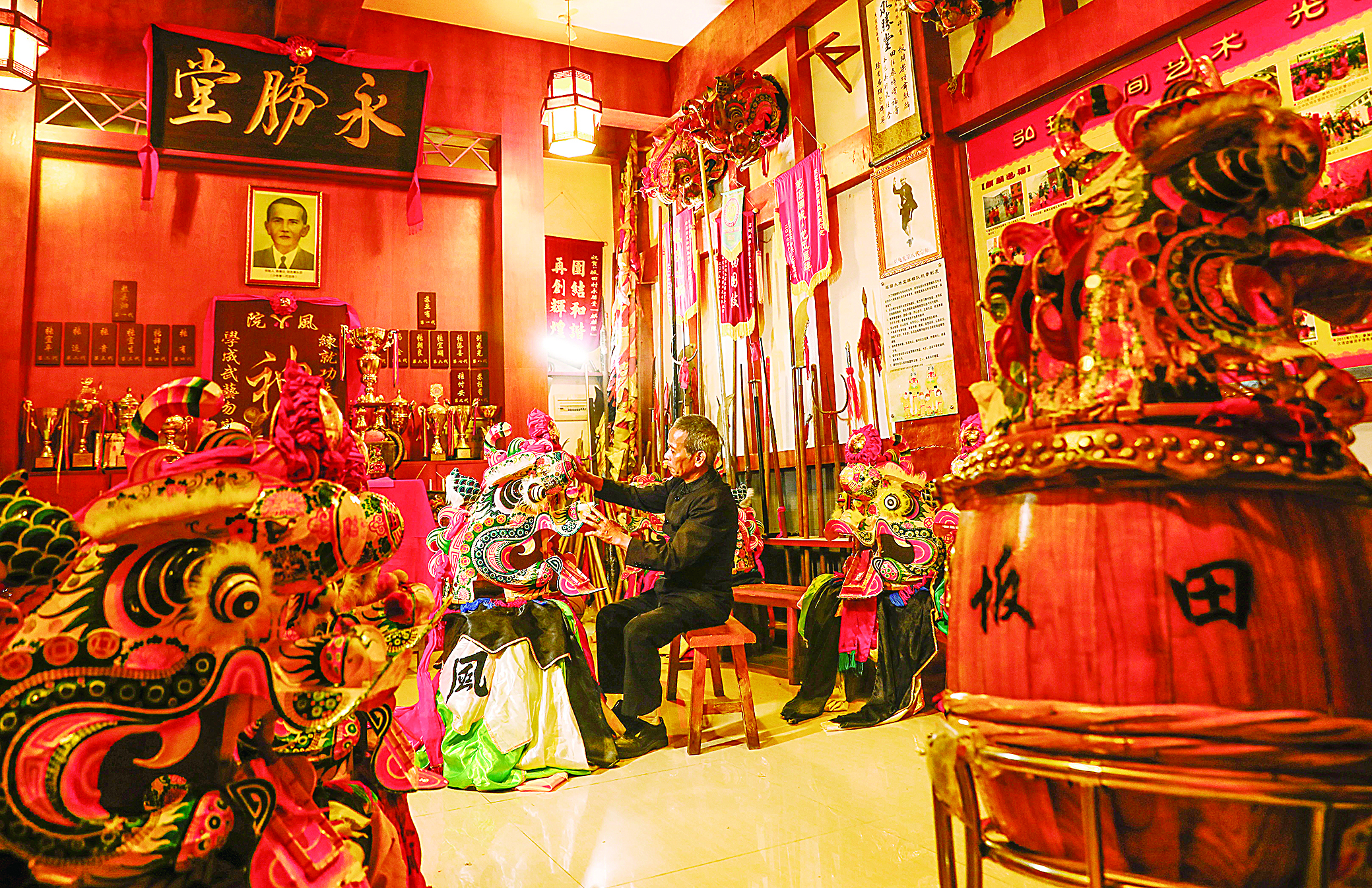 坂田永胜堂麒麟队始建于1840年,历经185年岁月洗礼,至今依然熠熠生辉。今年66岁的张志明,正是坂田永胜堂麒麟舞第十一代传承人。