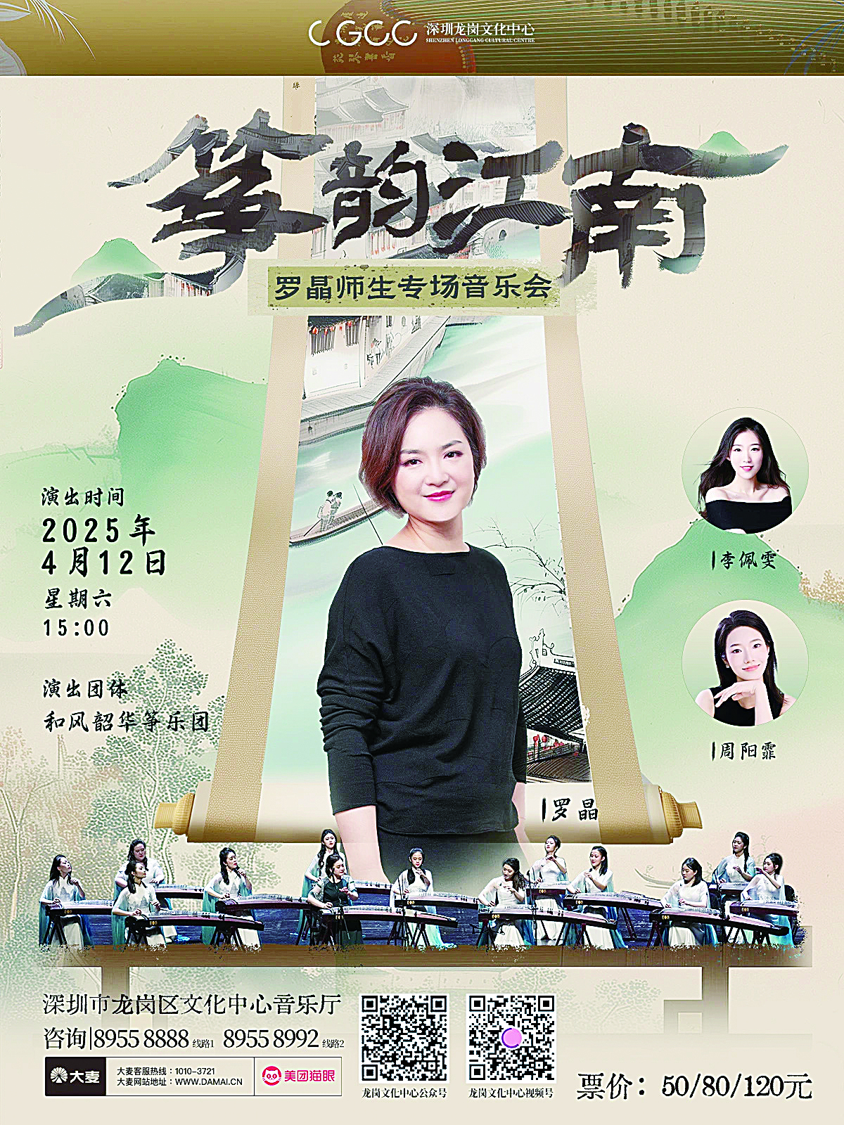 本报讯 (龙岗融媒记者 赵薇) 4月12日下午三点,龙岗文化中心音乐厅将迎来一场诗意盎然的古筝盛宴——“筝韵江南”罗晶师生专场音乐会。这场由著名古筝演奏家罗晶领衔,携手和风韶华筝乐团共同演绎的音乐会,将以江南文化为底色,用指尖弦音勾勒烟雨朦胧的水乡画卷,为观众呈现古筝艺术的千年韵味。