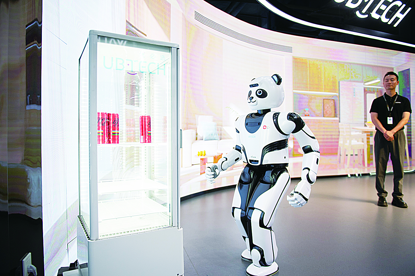 在深圳市优必选科技股份有限公司展厅,人形机器人准备展示从冰柜中取出饮料。新华社发