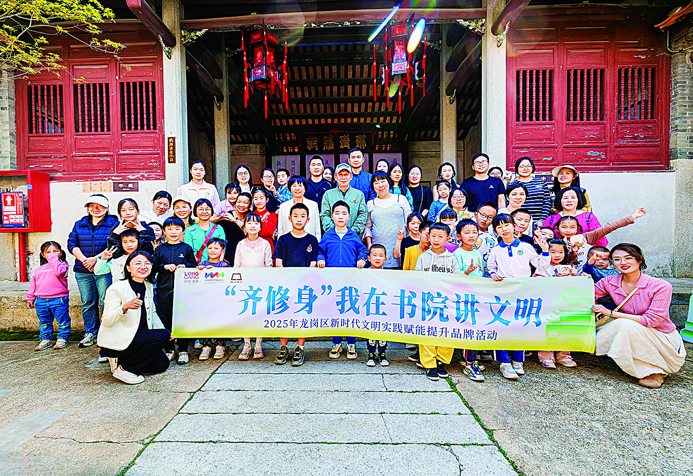 本报讯 (龙岗融媒记者 刘雯琪) 3月22日,2025年龙岗区新时代文明实践赋能提升项目首场活动——“我在书院讲文明”在深圳鹤湖书院启幕。首场活动以“齐修身”品牌为核心,依托鹤湖书院深厚的历史文化底蕴,通过丰富多样的艺术体验活动,吸引了数百名市民热情参与,让文明新风吹进千家万户。?