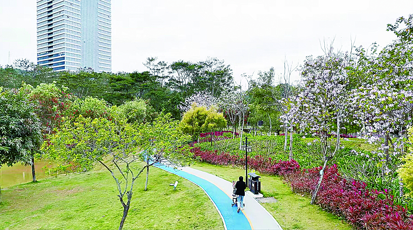 本报讯 (龙岗融媒记者 何小娟) 近日,位于园山街道安良社区梧桐山河左岸的梧桐山河生态湿地公园里,宫粉紫荆、黄花风铃木等竞相绽放,吸引众多市民前来感受春日气息。