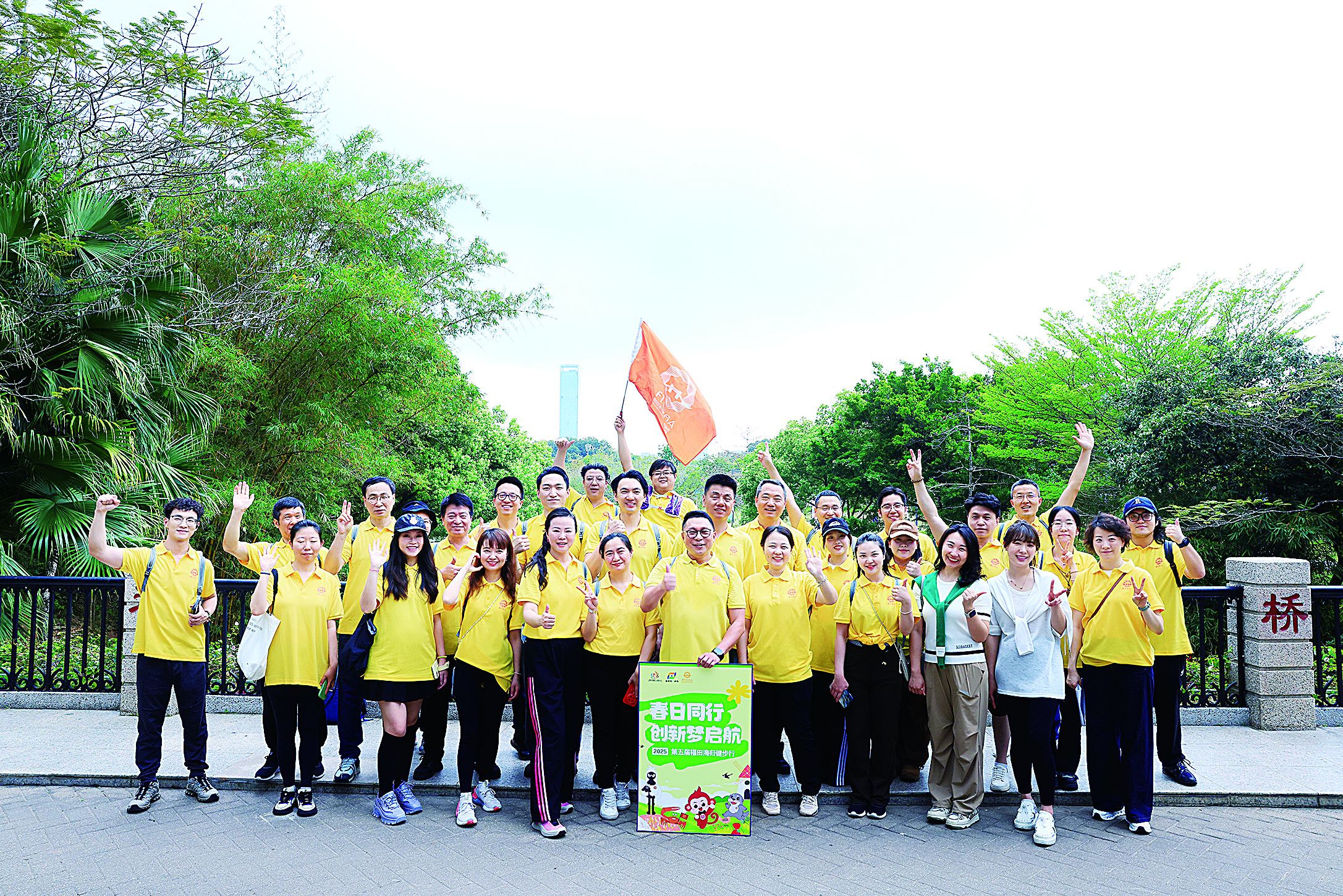 春意正浓,步履铿锵。3月28日,“春日同行 创新梦启航”2025第五届福田海归健步行活动在笔架山公园启幕,60余位侨界代表、海归精英、共建单位、友好单位成员及区政府部门、华富街道等单位代表,以运动为媒,以交流为桥,共话湾区创新发展新图景。