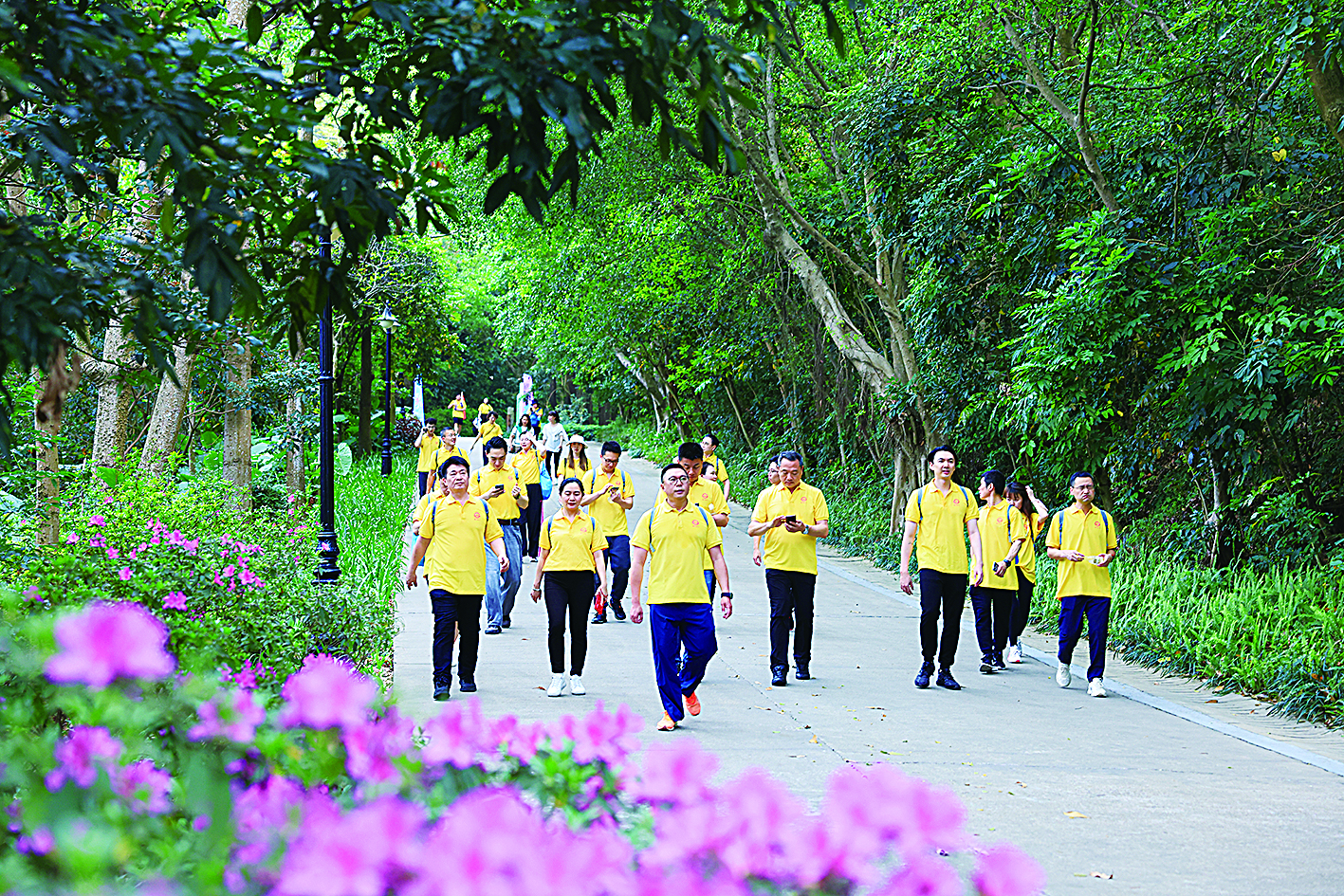 此次徒步路线途经2025粤港澳大湾区花园大赛主展区,沿途杜鹃、紫荆竞相绽放,科技感十足的“智慧花园”与生态景观相映成趣。