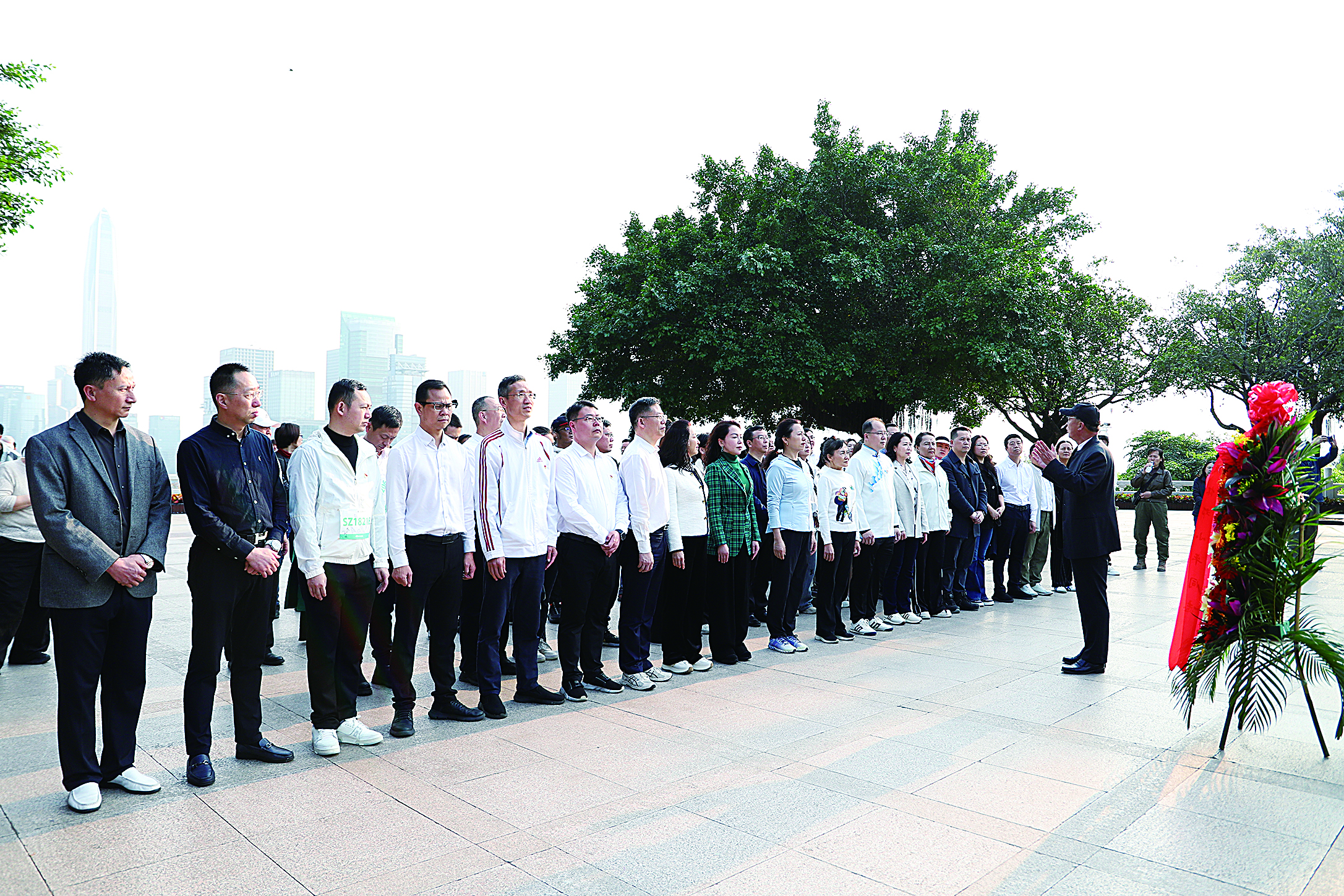 作为我国改革开放的一面旗帜,深圳始终牢记党中央创办经济特区的战略意图,敢闯敢试、敢为人先、埋头苦干,从一个边陲小镇迅速发展成一座欣欣向荣的国际化大都市,而沧海桑田的变化离不开改革开放的总设计师——邓小平。在邓小平铜像前,深圳市民宗局、市民促会、福田区民族团结进步协会和深圳市生态学会依次向邓小平同志铜像敬献花篮,市委统战部副部长、市民宗局局长吴欢,市民促会会长杨永群等迈步上前,仔细整理花篮缎带,缎带上写着“深切缅怀邓小平同志”。随后,全体在场人员向邓小平同志铜像三鞠躬。现场,深圳市民宗局党员干部主题党日活动同时开展,大家还共同聆听深圳大学客座教授、市民促会顾问宋磊岩讲述关于邓小平铜像背后的故事,饱满的激情、生动的语言令在场成员倍感振奋、深受启发。