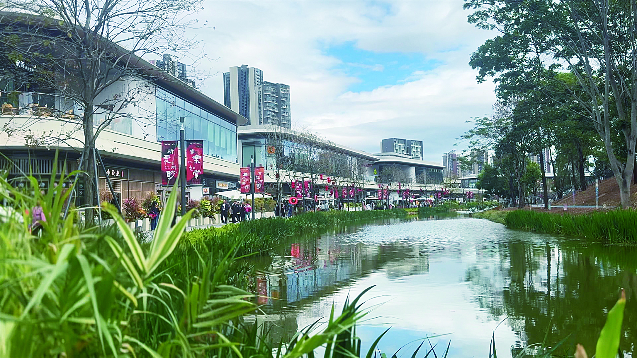 位于龙岗区的深圳大运天地独树一帜,创新性打造“公园式”商场,将自然景观与商业设施巧妙融合,营造出舒适的购物环境,为市民提供了集休闲、娱乐、文化、社交于一体的丰富的消费体验。图为深圳大运天地外景。龙岗融媒记者 赵薇 摄