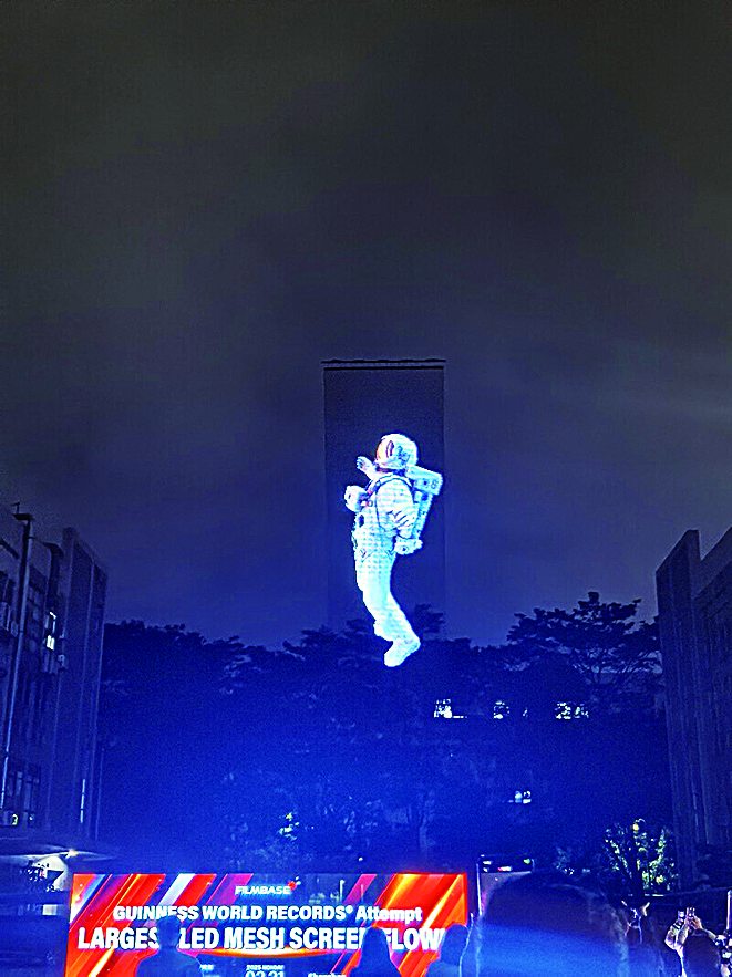 3月31日晚,龙岗企业深圳御光新材料有限公司成功挑战“世界最大的LED网状飞天屏”,以显示面积达72.66平方米的“飞天屏”创下吉尼斯世界纪录。“与传统的地面展示相比,‘飞天屏’不仅能实现超大面积的展示,还可结合高清透明显示技术与飞行设备,在空中创造出更为震撼和灵活的视觉效果。”御光新材料相关负责人说。