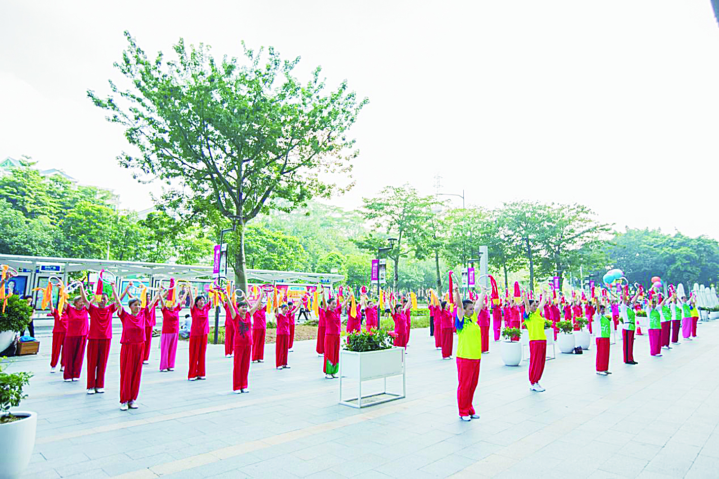 龙岗区全民健身志愿服务点实行常态化运行,各服务点按照“有场地、有老师、有组织、有教学”标准,定时定点开展广场舞、太极拳、健身操等20余种项目,连续8年累计开展约7.68万次公益健身指导服务,服务居民约439万人次。