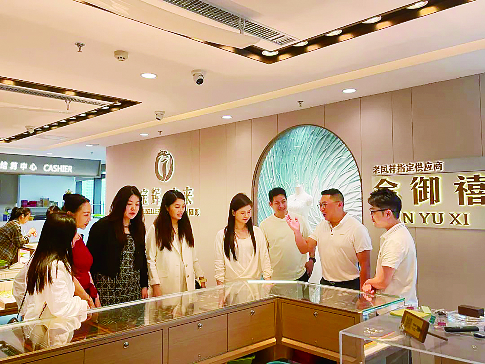 活动中,福田海归参观了品牌全新升级的珠宝展厅,从璀璨夺目的钻石镶嵌工艺到蕴含东方美学的翡翠雕琢技艺,海归们近距离感受了金御禧珠宝“传承经典,创新设计”的品牌理念。展厅内陈列的国际潮流轻奢款珠宝作品,展现出传统与现代碰撞的独特魅力,引发海归们对文化传承与市场趋势的热烈讨论。