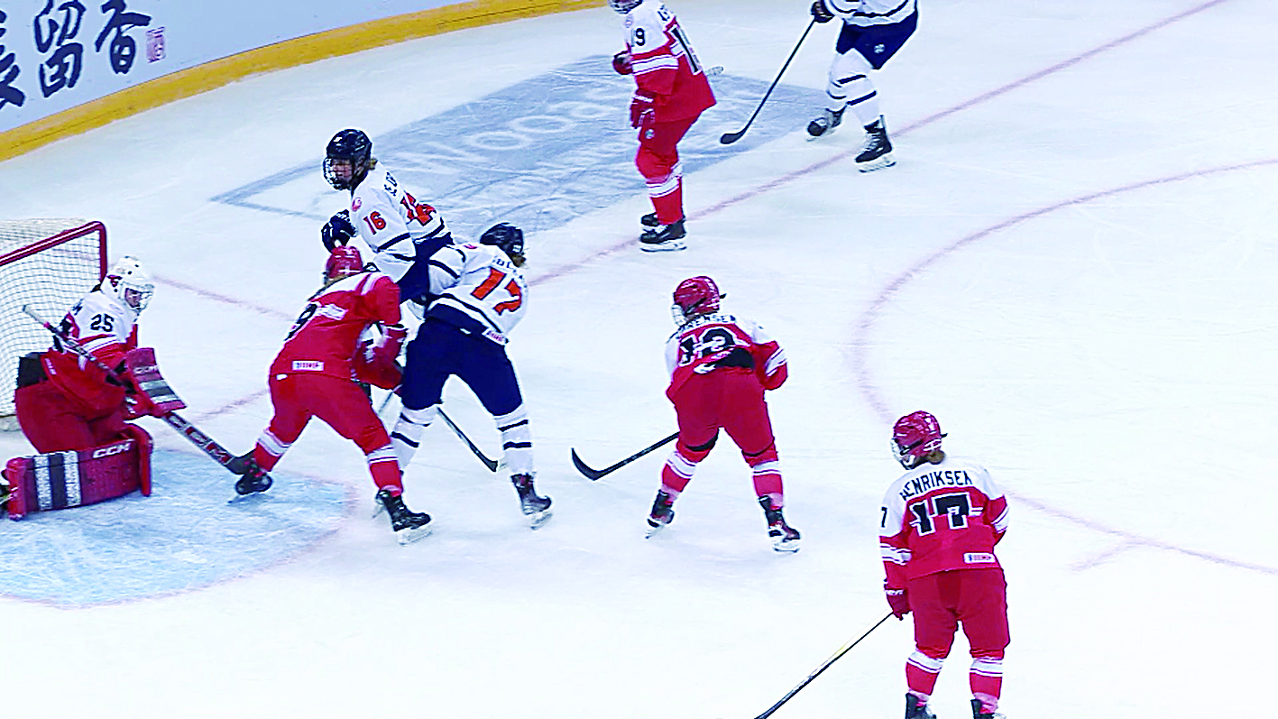 当天第一场比赛丹麦队对阵荷兰队,丹麦队在开场3分钟内连入两球奠定比赛大势,荷兰队在局末扳回一球,但丹麦队少打多时再入一球,荷兰队不甘示弱再次破门,3:2。第二局,丹麦队再入两球,5:2,格鲁德完成帽子戏法。第三局,双方各入一球,6:3。全场比赛,双方射正球门次数为31:35。