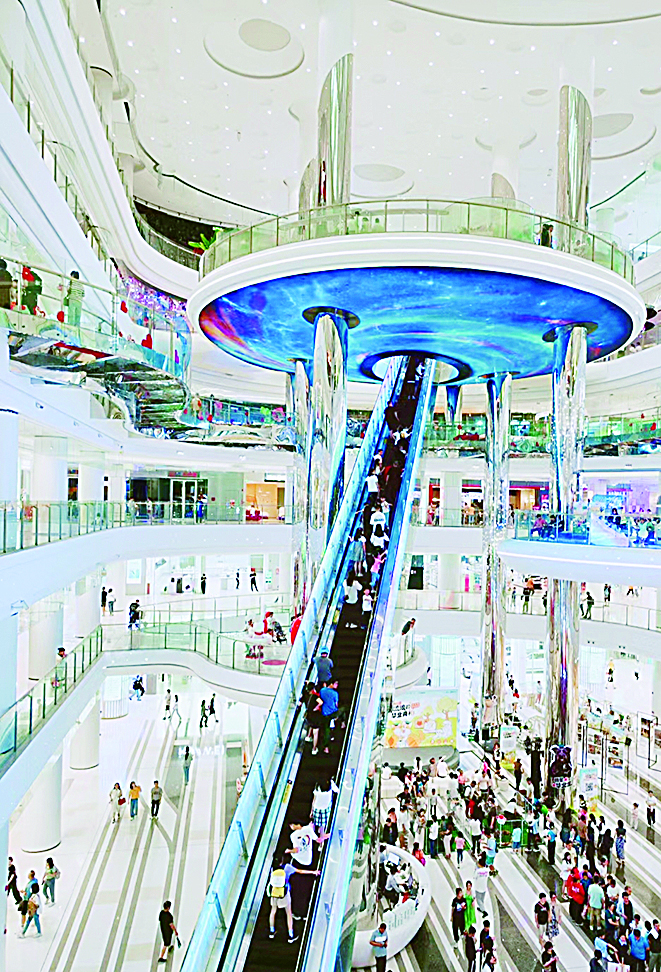 以平湖商圈的万达广场为例。作为龙岗新晋网红打卡地,万达广场依托沉浸式外幕灯光、世界最高商业室内扶梯天梯、巨型天穹等互动场景,用视觉美学为消费者构造了耳目一新的艺术体验,并汇聚了众多网红美食,引进了Partyday运动超乐场华南首店等超100家特色体验店,成为市内外游客假期出行的首选地之一,同时也是越来越多港人北上消费打卡的新地标。