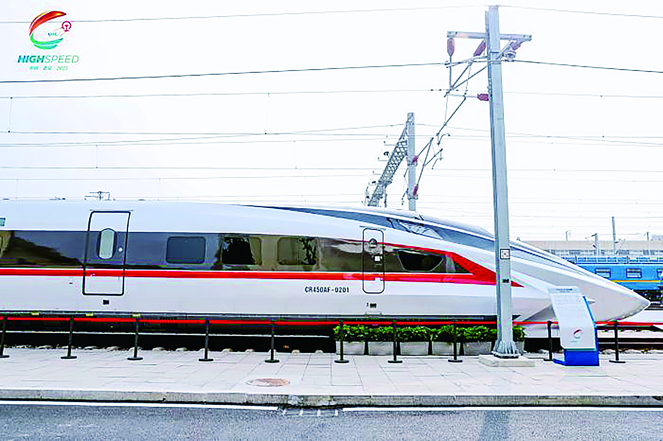 与大会同期举办的现代化铁路技术装备展上,中国的CR450动车组样车也惊艳登场。400公里的运营时速,将使它成为世界上运营时速最快的新一代动车组。