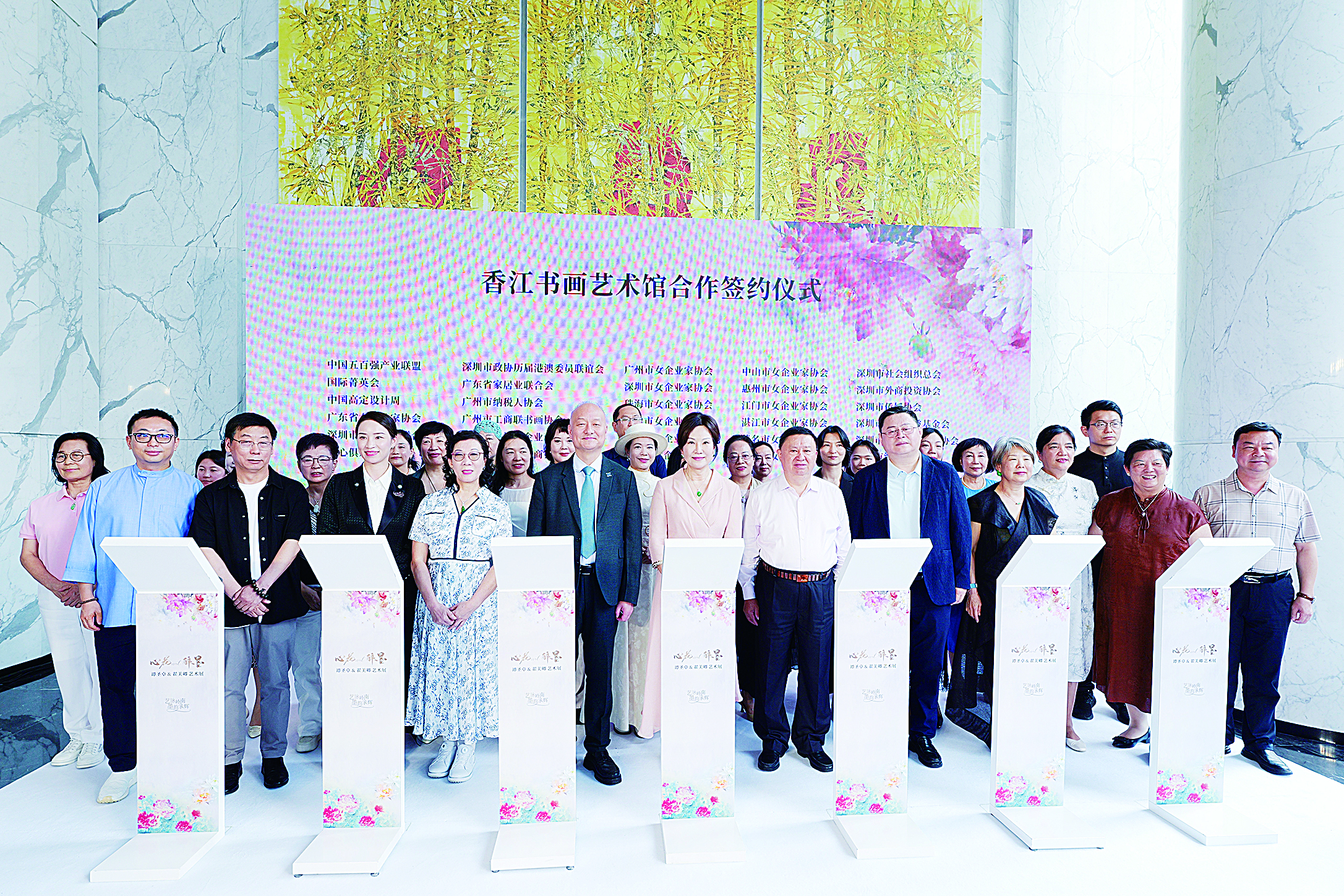 艺术展开幕式上,香江书画艺术馆迎来其作为跨界“文化会客厅”功能的重要实践——现场与中国五百强产业联盟、国际菁英会、广东省女企业家协会、深圳市侨商联合会、同心俱乐部等数十家全国及粤港澳大湾区顶尖商协会,分五批次签署战略合作协议。这标志着翟美卿提出的“艺术空间共享计划”正式落地。