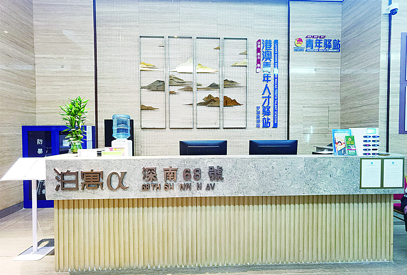 罗湖区青年驿站暨国际人才驿站位于深圳市罗湖区泊寓深南68号公寓。驿站提供酒店式全套管理服务,房间均配置有WiFi、空调、晾衣架、衣物甩干机、收纳箱等设施。驿站房间均摆放有罗湖区区情介绍、青年就业指南、消费指引、志愿服务一本通、青年活动指引等宣传材料,帮助入住青年快速融入城区。