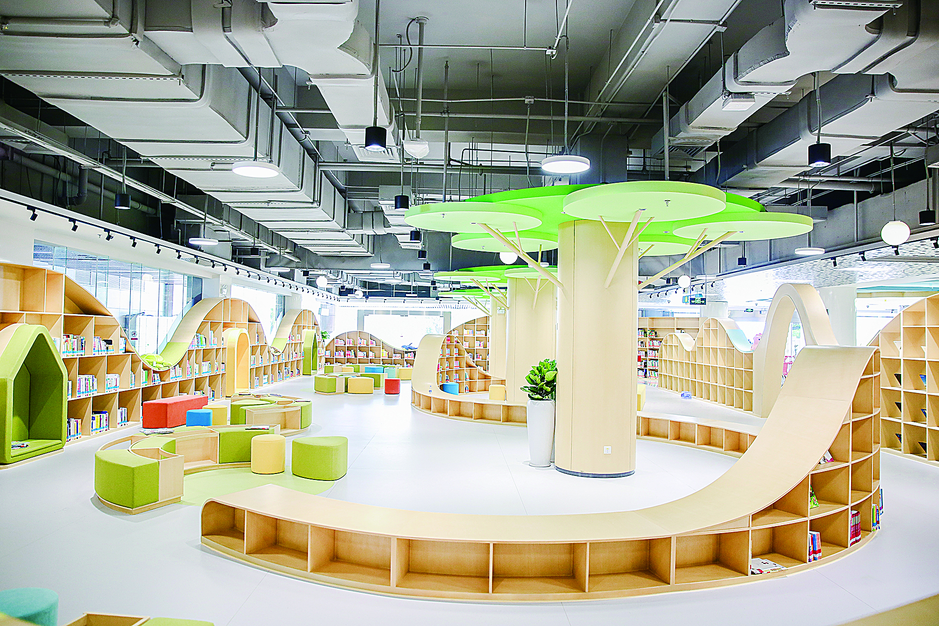 在龙岗区少儿图书馆,建筑面积约6500平方米的空间被打造成五大阅读空间,还有别具一格的彩虹桥、交流空间、悦读花园特色区域。图书馆全年无休对外开放,藏书达到50万册,配备825个阅览坐席,提供亲子阅读、绘本借阅、科创体验等服务。