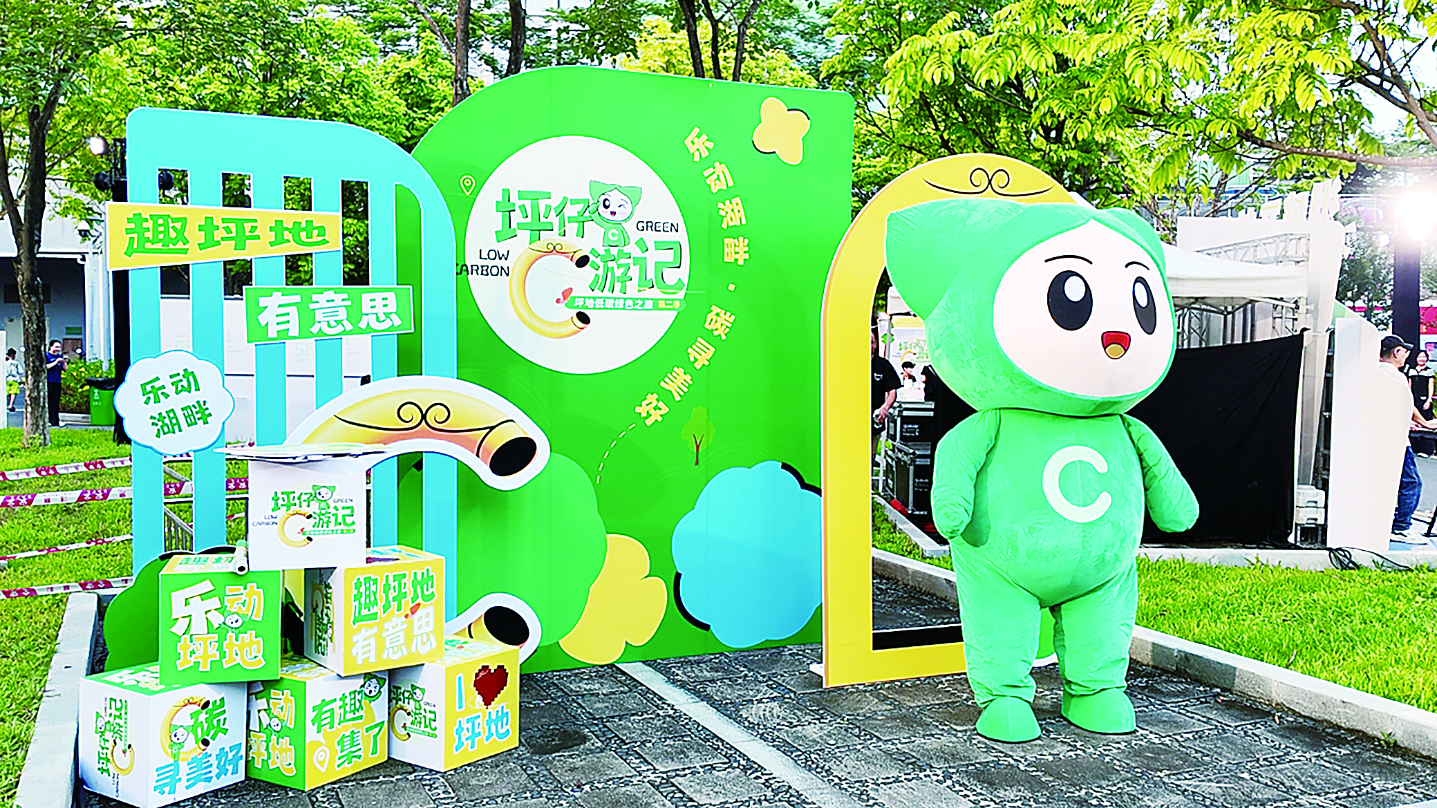 近日,“乐动湖畔?碳寻美好”坪仔C游记活动与“夏花?蝶语”湖畔音乐季活动在深圳国际低碳城蝴蝶湖畔燃情上演。贯穿白昼与星夜的活动,让坪地的低碳底色与生活温度,在湖畔交织成动人的乐章。图为“坪仔C游记”IP。龙岗融媒记者 区倩琳 摄影报道