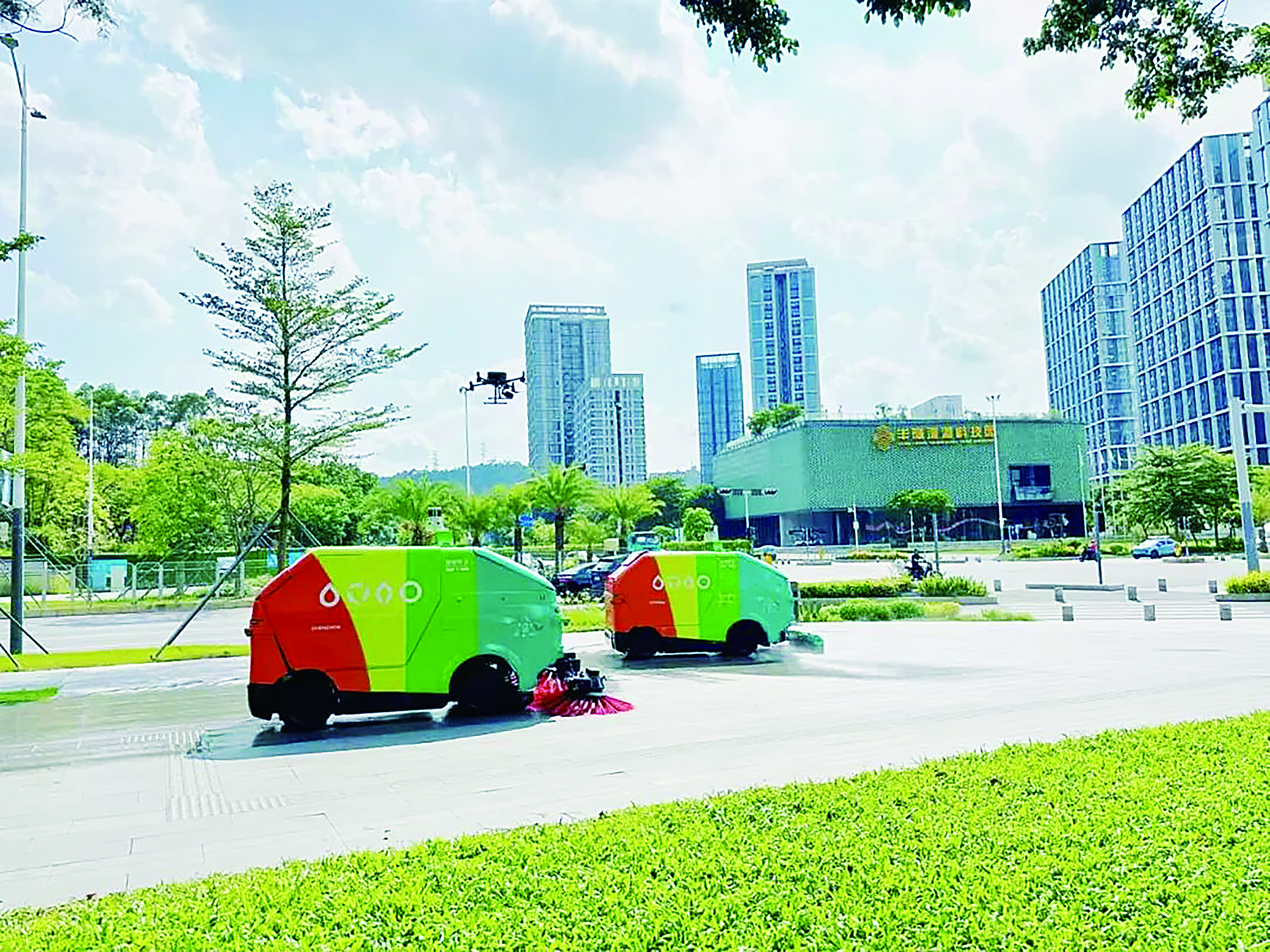 近日,“环卫机器人之家(蜂巢)”智能终端产品在深圳大运中心正式亮相,标志着龙岗区首个智慧清洁机器人充能站正式启用。同时落地的5台“小蜜蜂”环卫机器人正式上岗,通过人机协作模式减轻环卫工人工作压力。图为“小蜜蜂”按照既定路线作业。龙岗融媒记者 黄珍珍 摄