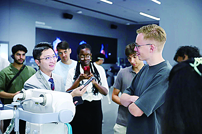 两国学子参观迈瑞医疗大厦。香港中文大学(深圳)供图