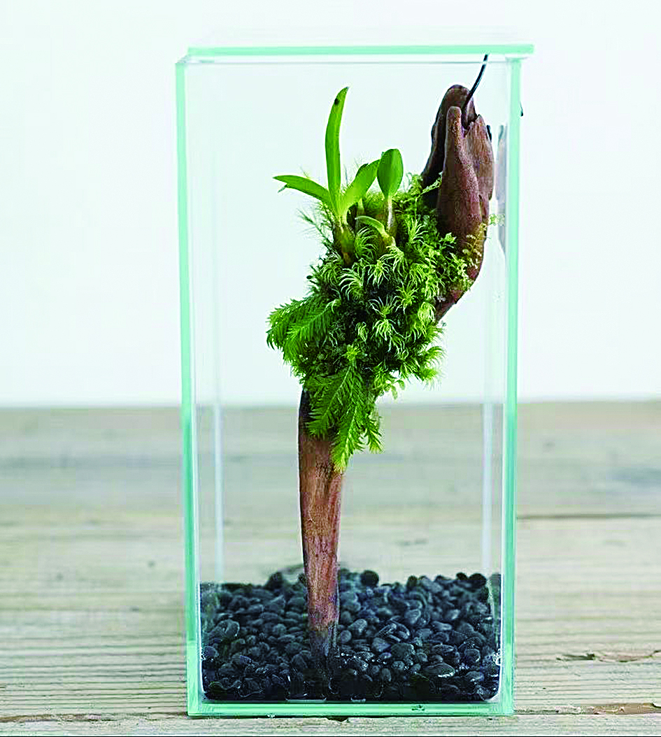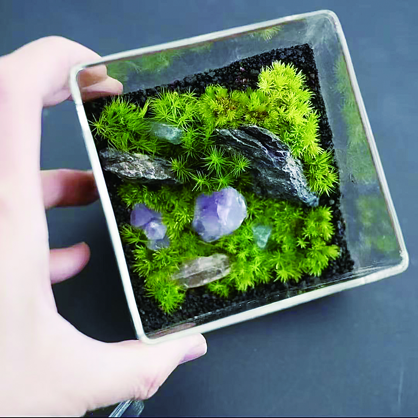 五年前,李科军在浏览网页时看到一幅微景观图片——一个玻璃瓶里“长”了一片迷你森林。正是这样一片浓缩在玻璃瓶里的绿意,撞进了他的心窝。“原来自然可以被‘浓缩’在手掌大小的空间里,那种静谧、清透,让我瞬间被震撼。”李科军至今记得第一次在网上看到微景观图片时的悸动。