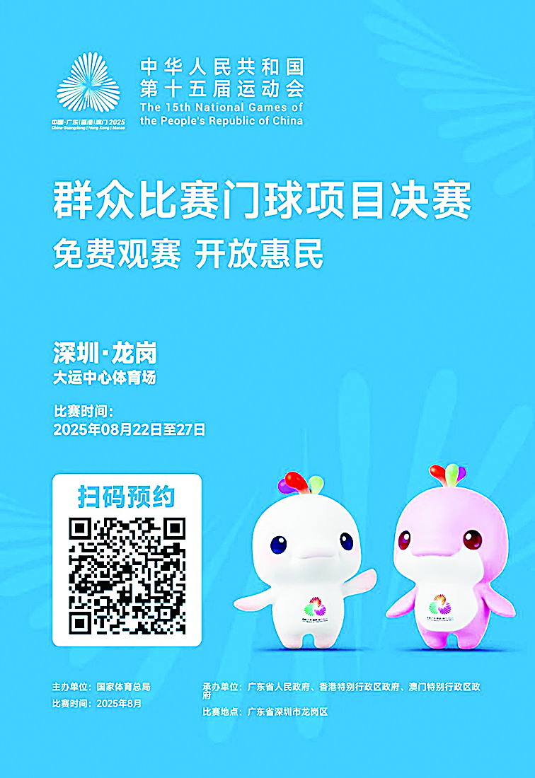 随着门球项目即将开赛,深圳赛区“全运时间”也将正式开启。这既是一场体育赛事的序幕,更是深圳向全国展示全民健身成果的重要窗口。目前,深圳、龙岗已做好全面准备,将以安全、精彩、惠民的赛事呈现,为十五运会贡献“深圳力量”“龙岗力量”,为体育强国建设增添“湾区活力”。(更多内容详见A05)