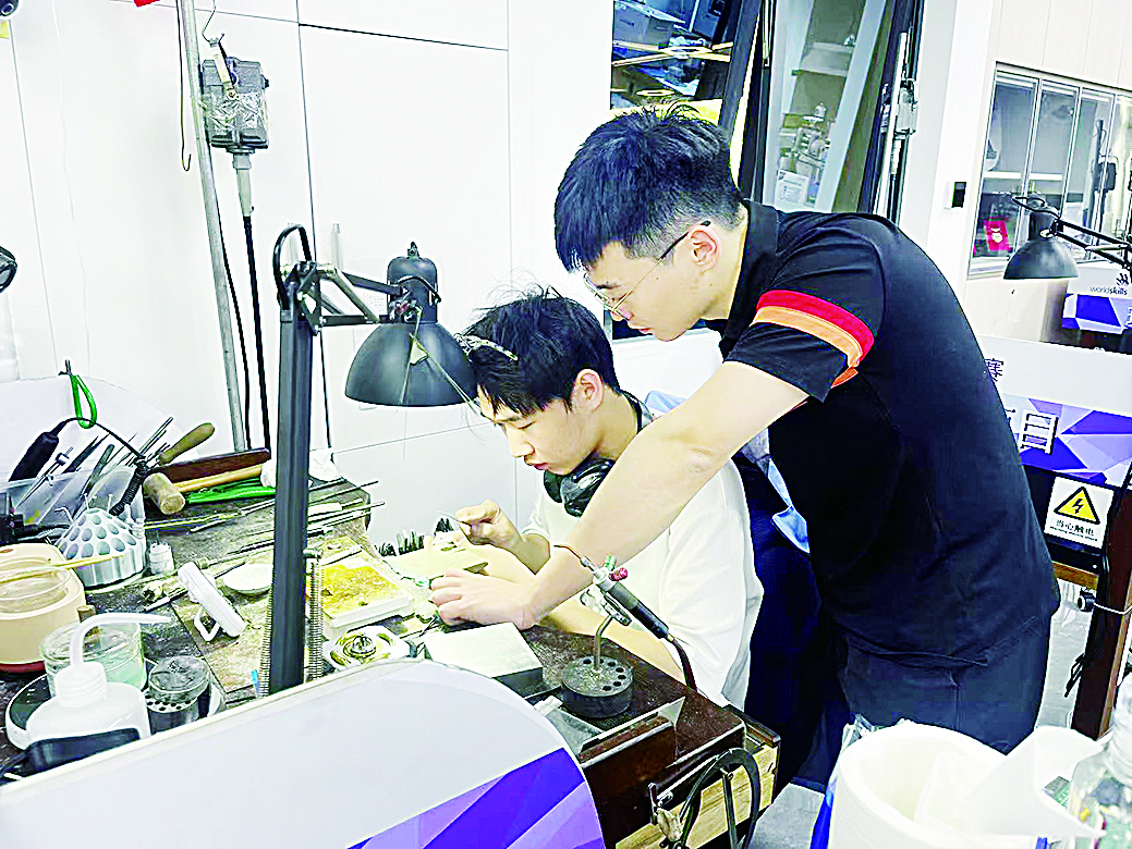 胡凡所在的珠宝学院师资力量雄厚,4名博士、32名硕士、3名海归教师和7名高级职称教师汇聚于此,10名全国技术能手更是为教学注入强大动力,双师型教师占比80%以上。近5500平方米的实训场地、国家级技能大师工作室等30余间实训室,为学生提供充足的实践机会,世界技能大赛珠宝加工项目训练基地更是实现中国在该项目奖牌“零”的突破。这些都是胡凡从选择到成才、从学生到教师转变的底气。