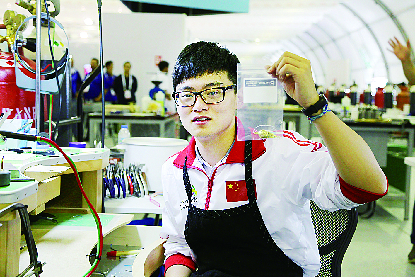 珠宝加工项目要求选手熟练运用各种工具,作品的构思、形状和结构,甚至还涉及珠宝的摄影。然而,几乎所有的工具都是按照右手习惯而设计,这对于左撇子的胡凡而言,在对自己近乎苛刻的极致追求中更是难上加难。