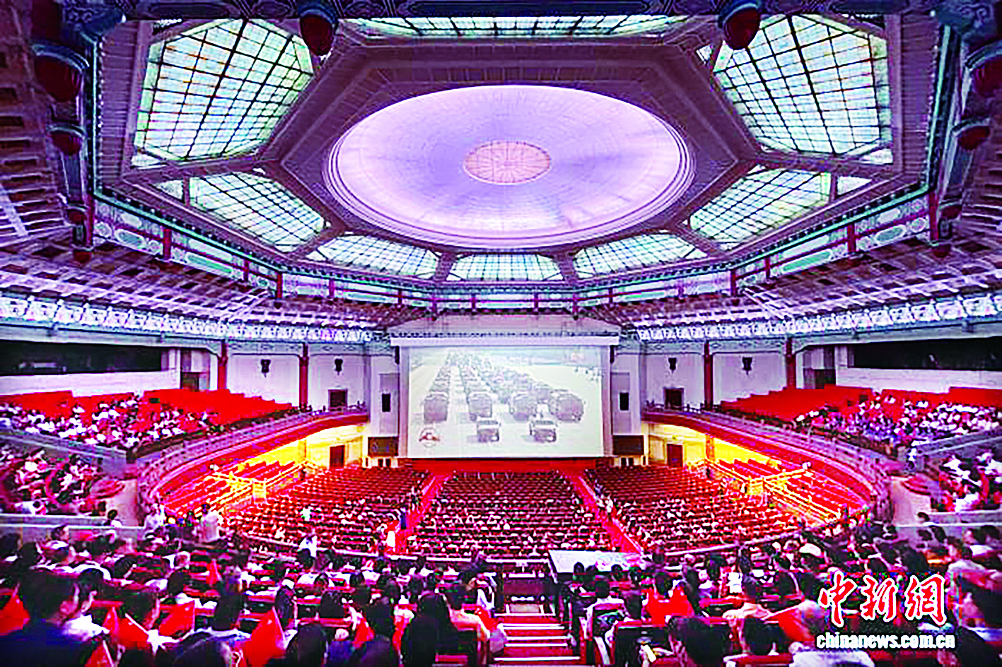 为纪念中国人民抗日战争暨世界反法西斯战争胜利80周年,“铭记历史,传承薪火”千人观看阅兵直播活动当天在广州举行。其中,来自美国、英国、新西兰、马来西亚等25个国家的青年侨领、归侨代表等60人在中山纪念堂与各行业代表、学生代表等1000余人共同观看直播。