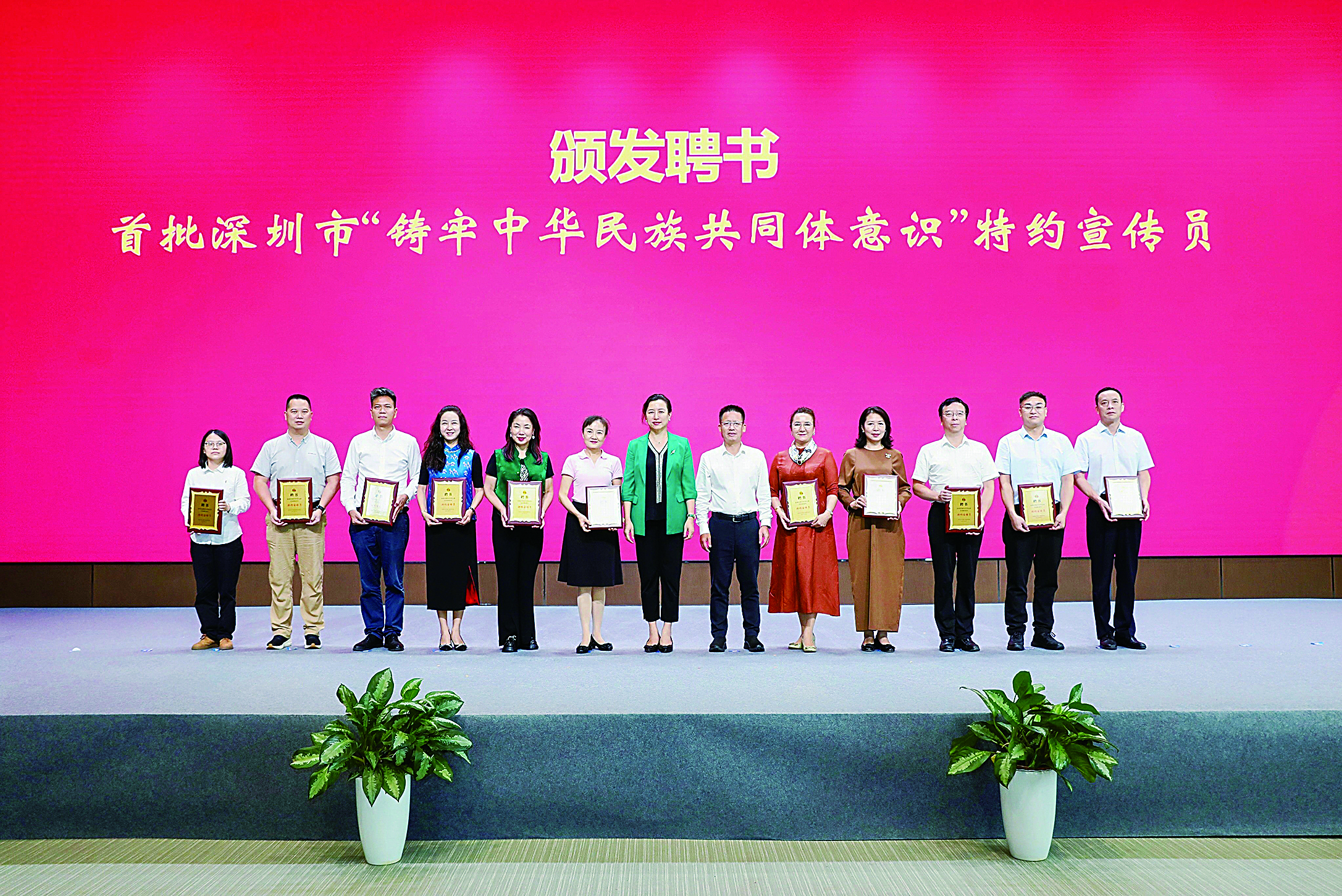 在广东省第15个民族团结进步宣传月到来之际,深圳市部署开展民族团结进步宣传月系列工作。本次启动仪式上,深圳为首批铸牢中华民族共同体意识“特约宣传员”颁发聘书,为深圳技术大学“铸牢中华民族共同体意识研究中心”揭牌,为首批深圳技术大学“铸牢中华民族共同体意识研究中心”研究员颁发聘书,并同步启动“推广普及国家通用语言文字铸牢中华民族共同体意识”“民族宗教政策法规学习月”主题活动,通过一系列务实举措推动深圳民族工作高质量发展。