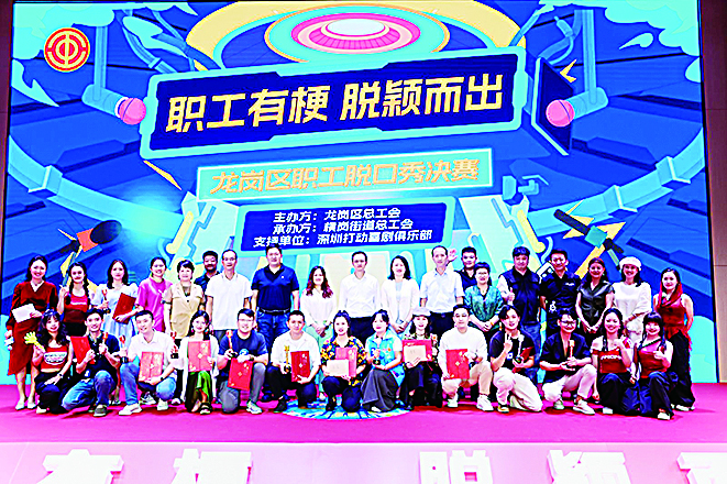 本报讯 (龙岗融媒记者 陈英东 通讯员 黄小琪) 近日,龙岗区总工会首届“职工有梗·脱颖而出”职工脱口秀比赛决赛在横岗文体中心举行,10组选手轮番登台,以幽默诙谐的语言、生动有趣的段子,结合自身工作经历和生活感悟,为观众呈现一场令人捧腹大笑的视听盛宴,现场气氛热烈。