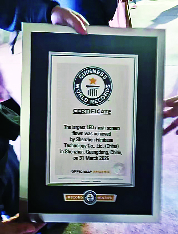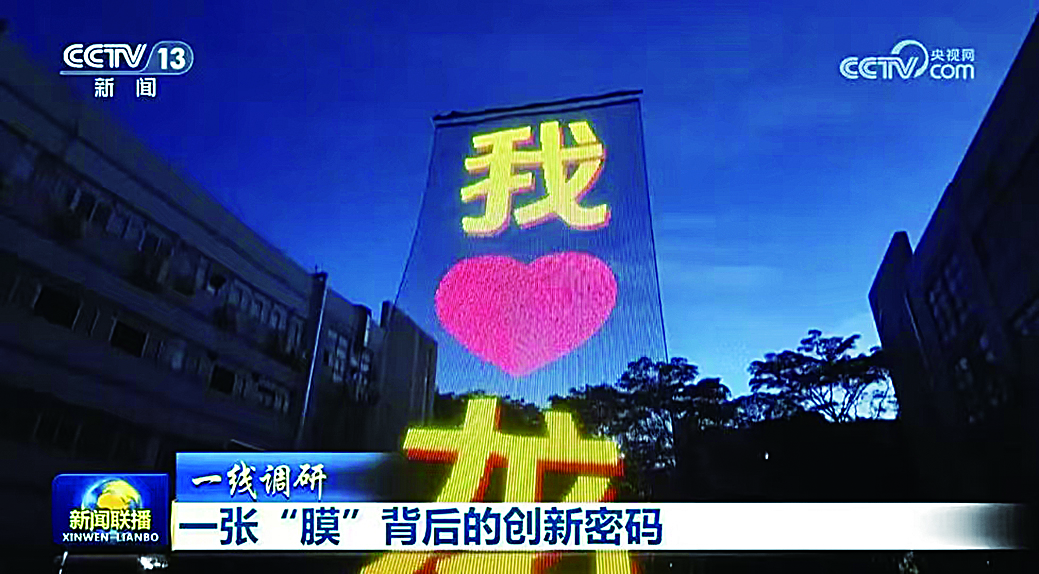 让撒贝宁等人啧啧称奇的“飞天屏”,实际上大有来头:今年3月31日晚,御光新材料在深圳市龙岗区成功挑战“世界最大的LED网状飞天屏”,并以显示面积达72.66平方米的“飞天屏”创下吉尼斯世界纪录。