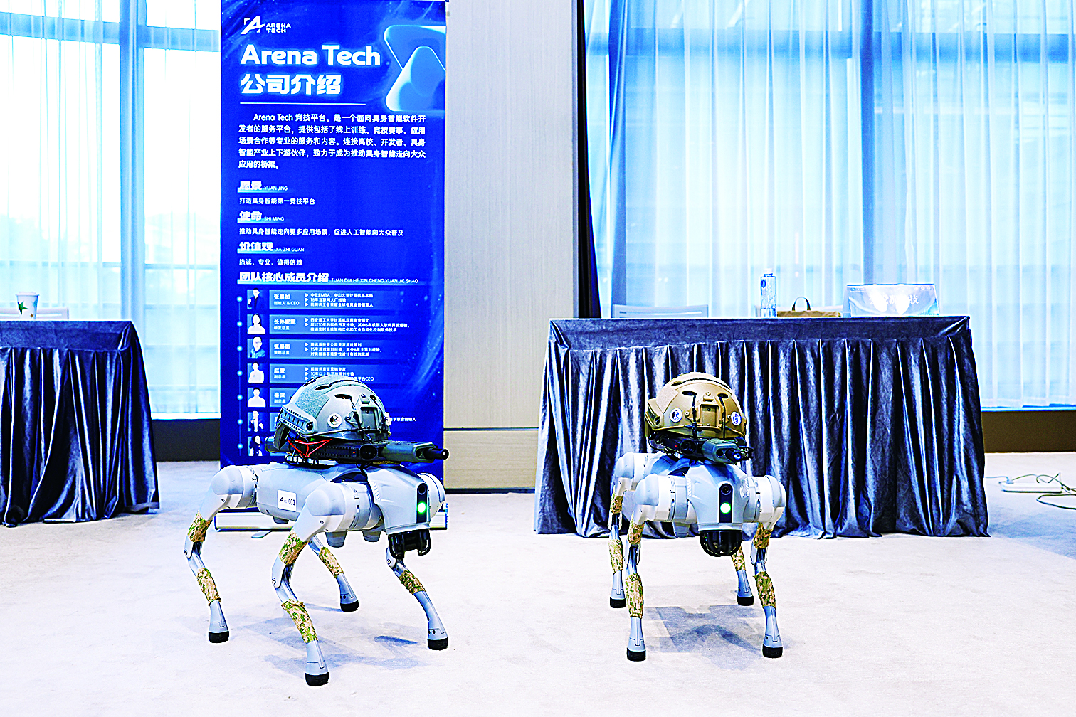 爱伦那科技(深圳)有限公司合伙人秦深现场演示,只需语音指令,两条机器狗便灵动上前展开趣味角逐,能在0.5秒内识别20米内的异常热源、移动目标,萌趣互动让展台秒变“打卡点”。