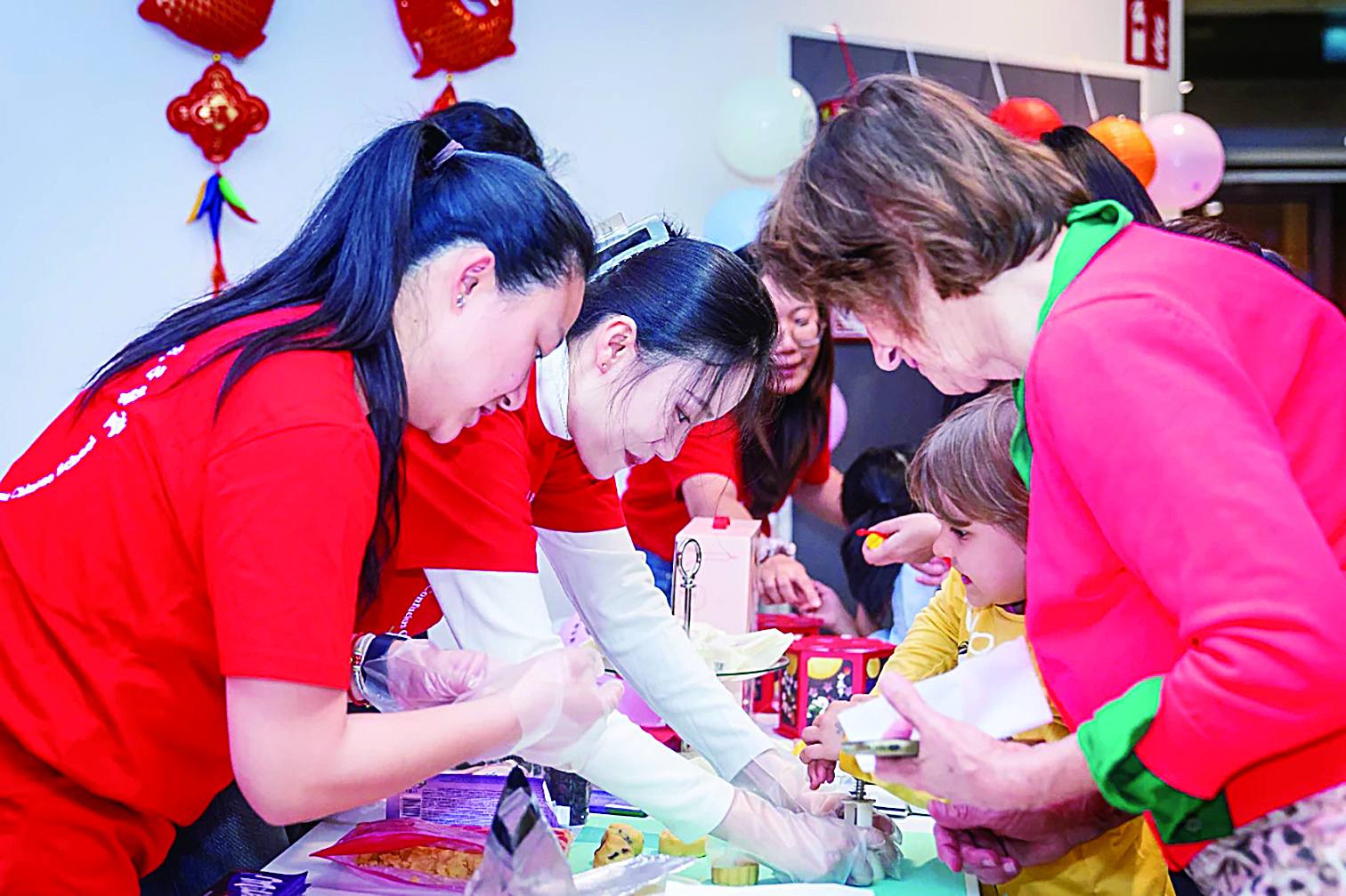 中国节庆美食品尝区人气最旺,月饼与饺子香气四溢,参与者不仅能品尝传统美味,还能亲手体验包饺子、做月饼的乐趣,感受“团圆”寓意。