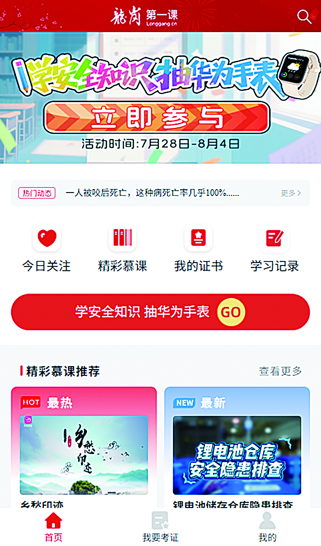 线上学习如何避免“枯燥”?“龙岗第一课”用“学习抽奖”玩出了新花样。7月底,为让安全学习更加“有意思”,“龙岗第一课”创新开展线上安全学习抽奖活动,市民登录平台完成安全课程学习即可参与抽奖。活动期间超5万人次取得证书,学习参与度显著提升。