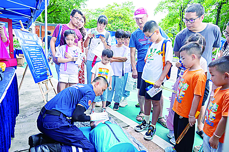活动以“积分兑换礼品”为吸引点,围绕消防安全、应急急救等安全知识,设置科普、实操、游戏三大互动区,通过视频教学、互动游戏、实操体验、打卡闯关等形式,打造“龙岗第一课”安全体验场景,提高市民的风险防范与自救互救能力。市民参与各区域互动可累计积分,达到一定分值即可兑换应急急救包,形成“学知识—练技能—传理念”的安全科普闭环。