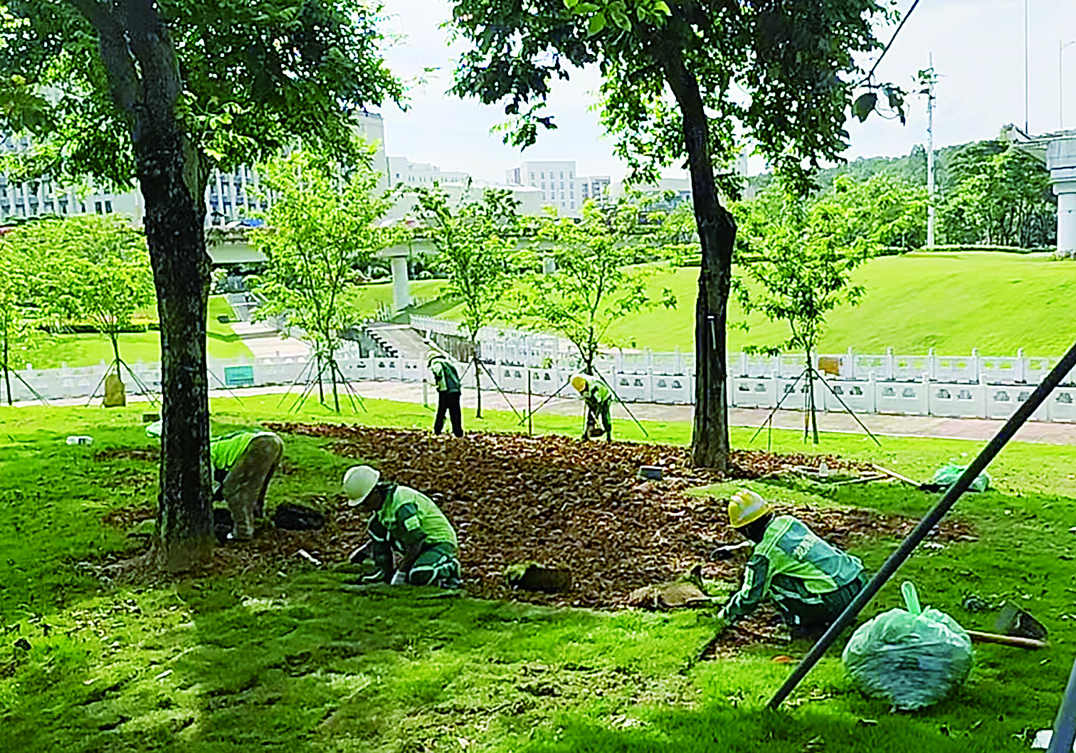 据统计,截至目前,龙岗区累计补植苗木约11000株,修剪苗木面积约3500平方米,修剪草坪面积约7500平方米,实现绿化垃圾“日产日清”,有力保障了沿线绿化景观的完整与美观。