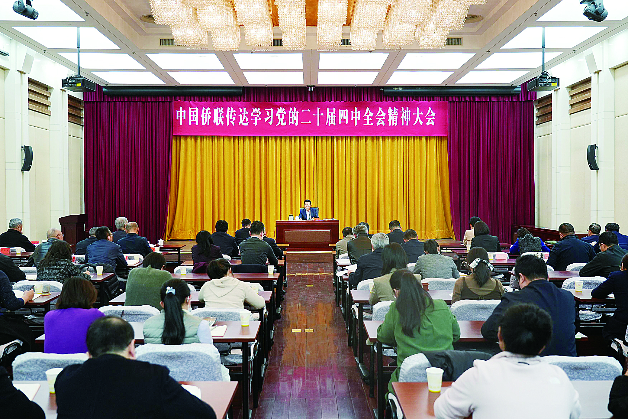 10月29日,中国侨联召开传达学习党的二十届四中全会精神大会,结合侨联工作实际,研究部署贯彻落实全会精神的具体举措。中国侨联党组书记、主席王灵桂主持会议并作宣讲报告。