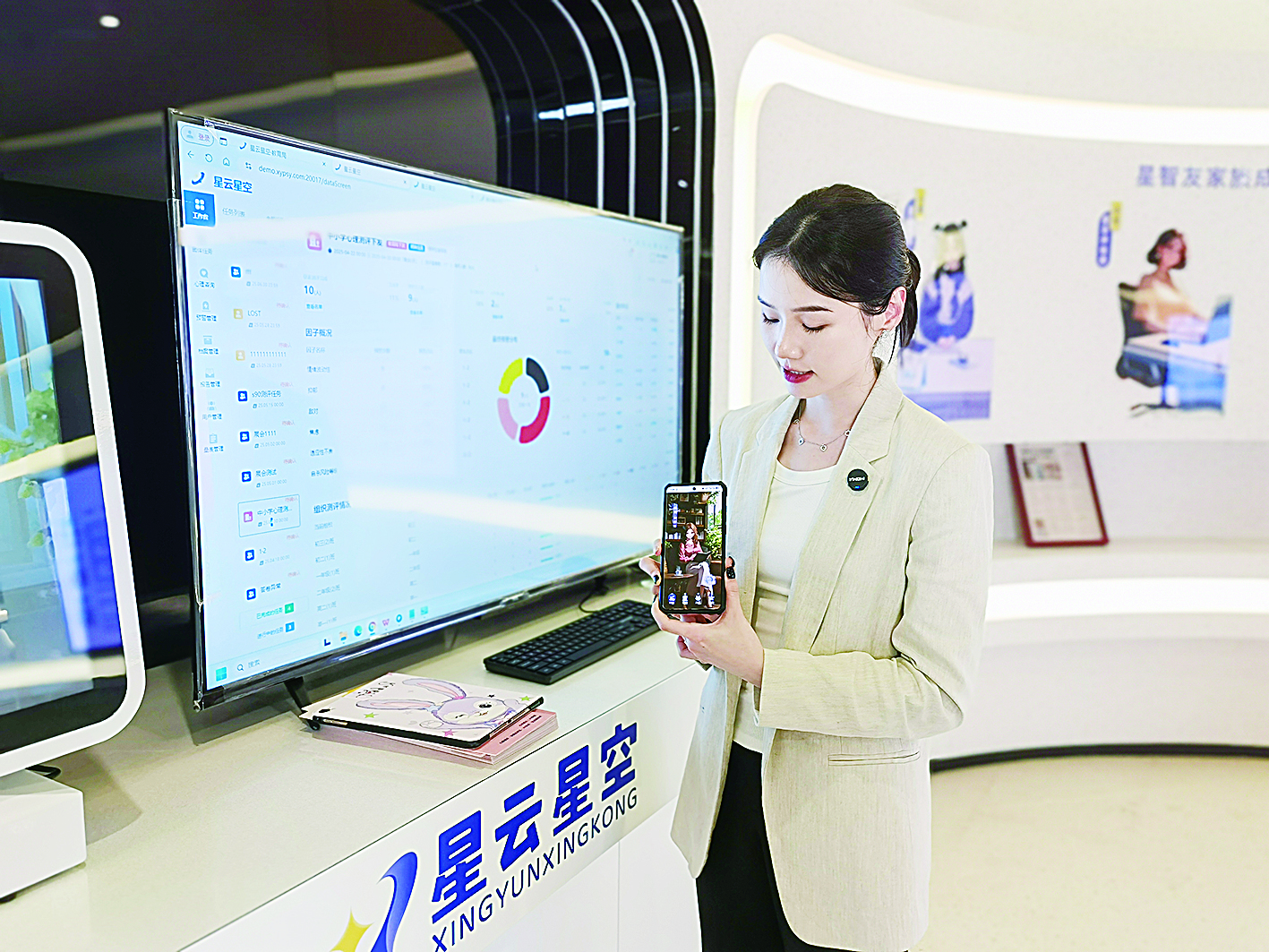 “近年来,我们的星云星空心理大模型不断在进化,人工智能日夜不停地学习各类心理学著作,心理评估能力和心理咨询能力不断增强。”祝宁馨介绍,目前,基于星云星空心理大模型打造的AI心理评估仪已摆放在全国各地数十家中小学校中,为上百万青少年提供心理服务;“星智友”AI心灵小屋集成“星智友”AI心理师一体机与高私密性独立舱于一体,营造出沉浸、私密、安全的心理支持环境,进一步保障了服务使用的私密性与主动性;其自主研发的星云星空APP,则可以为各行各业的人线上提供专业、平价的心理咨询服务,深夜“emo时刻”、职场压力爆发时,随时可找AI咨询师“南希”倾诉……