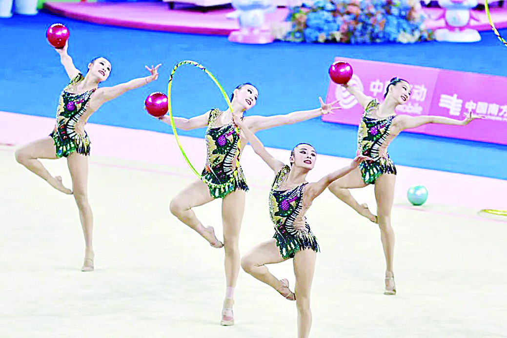 十五运艺术体操集体全能决赛现场,四川队带来精彩表演。