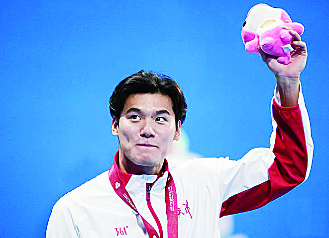 本报讯 (龙岗融媒记者 赵薇 丁云铃 谢燊) 11月11日,第十五届全国运动会游泳赛赛场激战正酣,第二日角逐中,四枚金牌“花落各家”。奥运双星“蛙王”覃海洋与“蝶后”张雨霏稳健发挥,毫无悬念地为上海队和江苏队摘得金牌;天津队王长浩问鼎本届全运会新增设的50米蝶泳首金;而河北队13岁小将于子迪则以破亚洲纪录的惊艳表现,强势夺取女子200米混合泳冠军,成为全场的最大惊喜。