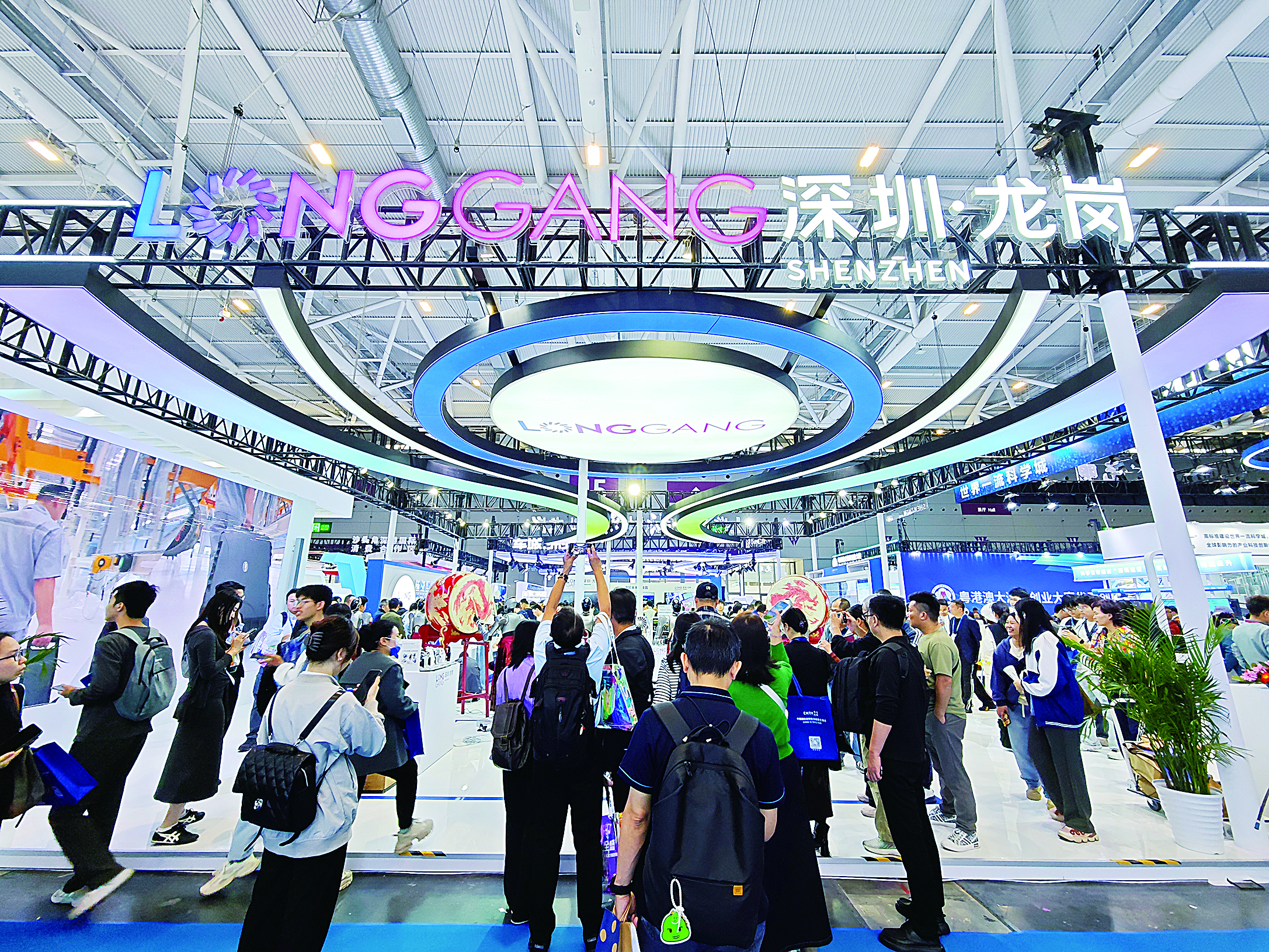 11月14日,第二十七届中国国际高新技术成果交易会在深圳国际会展中心正式开幕。在15号馆的龙岗展区内,270平方米的展示空间里汇聚了38家企业(单位)的93款科技产品,各类创新成果集中亮相。龙岗区除了有38家企业在15号馆的龙岗展区集中参展外,另有27家区内机构和企业在多个场馆独立参展。其中,香港中文大学(深圳)、深圳北理莫斯科大学、深圳信息职业技术大学等三大驻区高校设在11号馆的展位备受关注,频频引来观众驻足围观。图为龙岗展区人气爆棚。龙岗融媒首席记者 聂朦 摄
