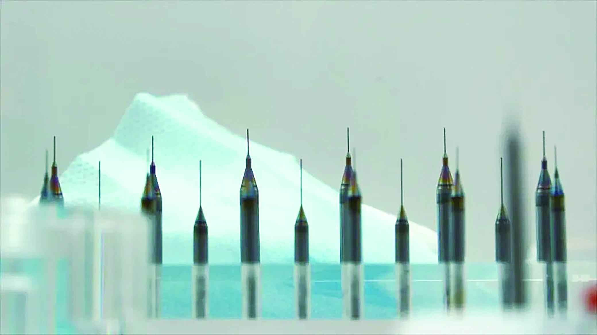“很难想象吧,这根直径只有0.01毫米的铣刀,比一根头发丝还要细,却能完成如此精细化的加工作业!”金洲微钻产品线总经理刘洋手指着一旁的铣刀,笑着告诉记者,“这背后,不仅是对技术的极限突破,更是对企业综合研发和制造能力的终极考验。”