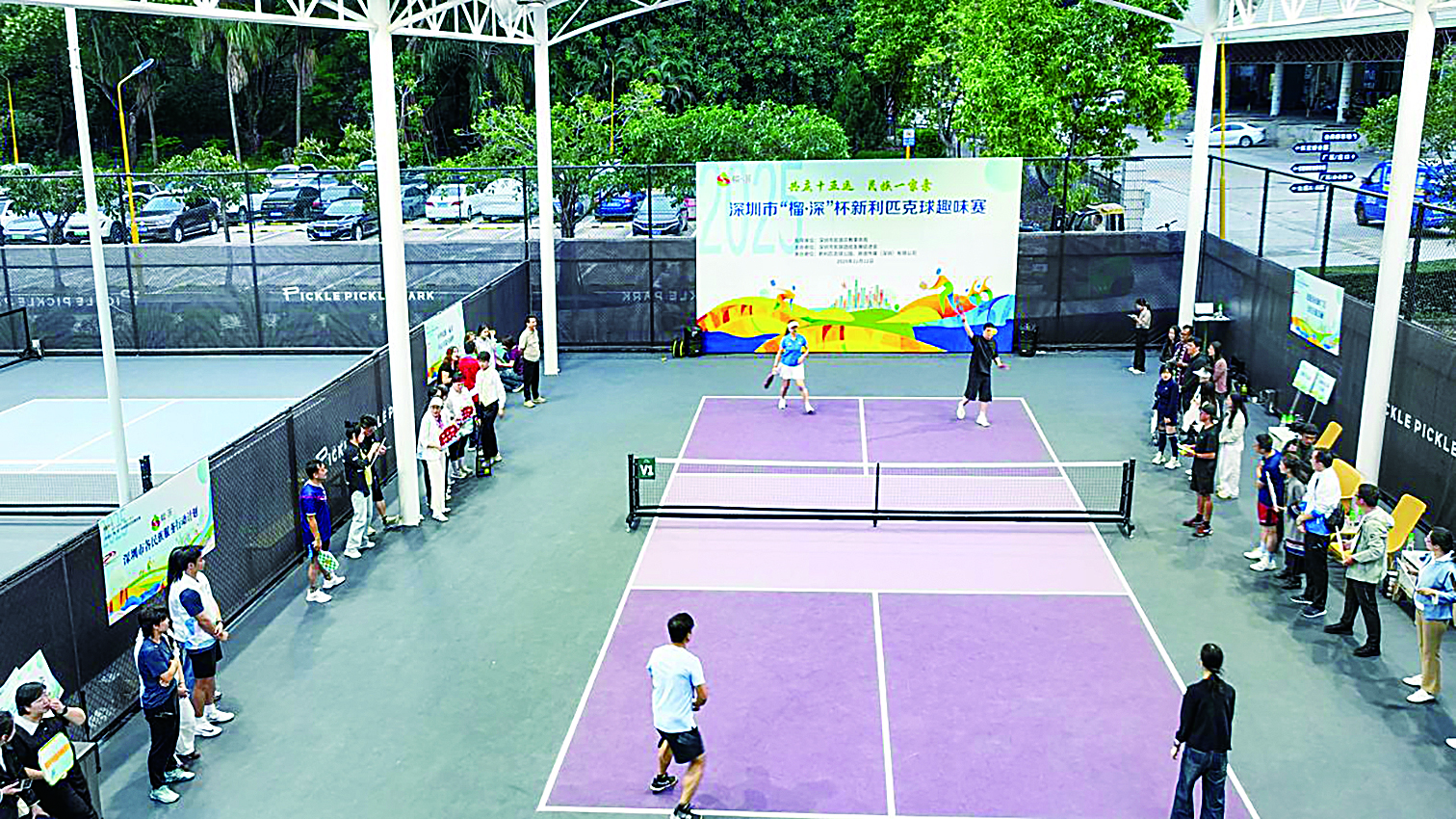 “拿着大号乒乓球拍、在羽毛球场地上打网球,用这句话来形容匹克球很形象。”此次趣味赛的承办方、新利实业(深圳)有限公司董事兼副总经理林新健介绍道,这项运动既展现了活力与拼搏精神,也契合了强身健体、社交娱乐的需求。由于自己特别喜爱这项运动,于是他把工业园区一角改建成了匹克球公园,此次深圳市“榴·深”杯新利匹克球趣味赛正是该匹克球公园开园后迎来的首场比赛。看见大家现场玩“嗨”了,他坦言以后不愁没球友了。