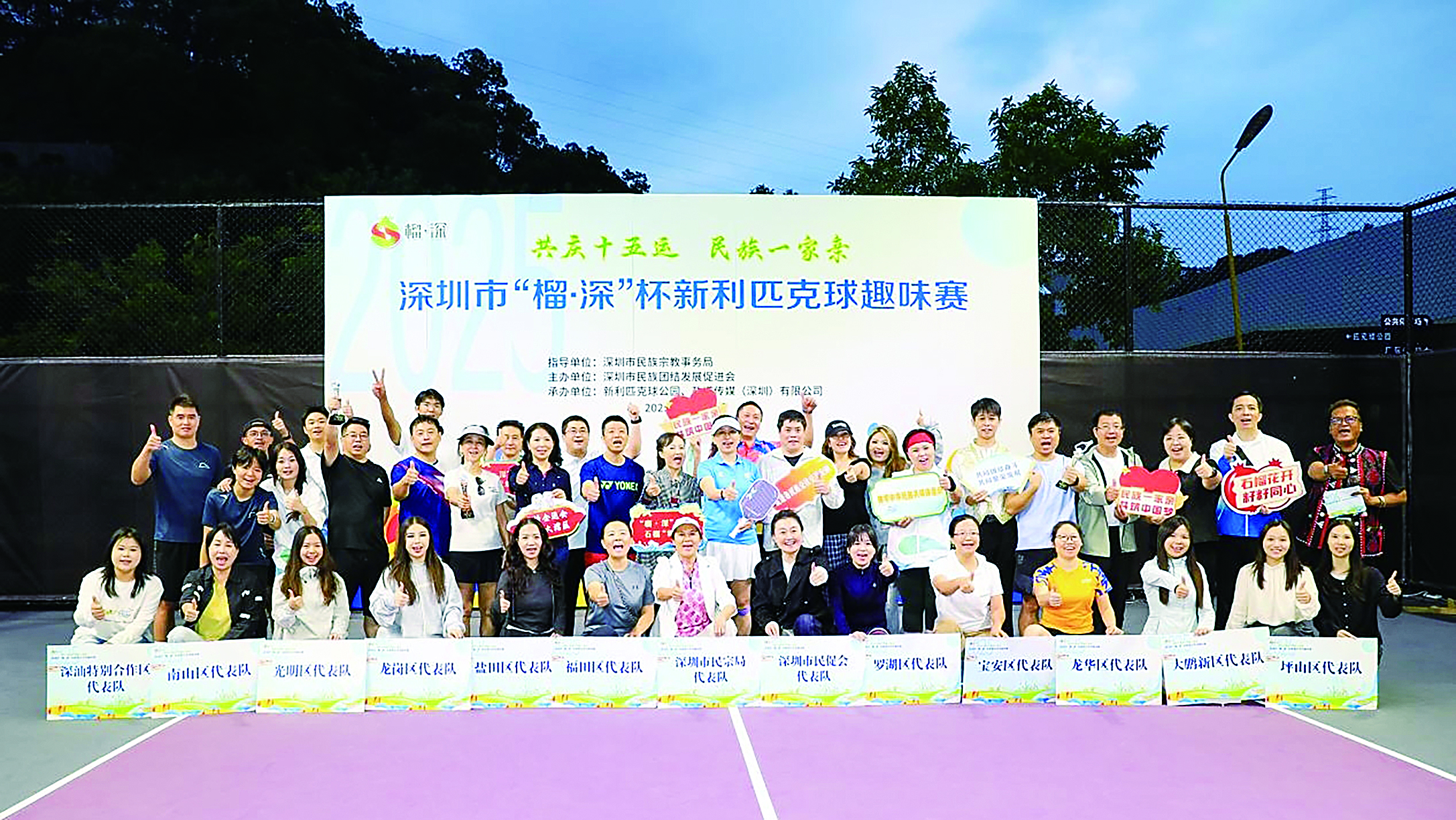 挥拍、跑位、冲吊,场上选手们敏捷的身手、精准的击球引发阵阵掌声和欢呼声……11月12日,就在第十五届全国运动会在粤港澳大湾区三地火热进行时,由深圳市民宗局指导、市民族团结发展促进会主办的深圳市“榴·深”杯新利匹克球趣味赛在新利匹克球公园举行。这场以“共庆十五运 民族一家亲”为主题的赛事,吸引了来自全市各区(新区、特别合作区)13支队伍踊跃参与,用运动激情绘就鹏城民族团结的生动画卷。