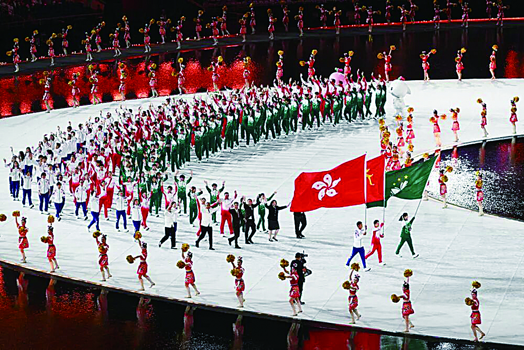 代表团入场环节,东道主广东、香港、澳门体育代表团同步入场。