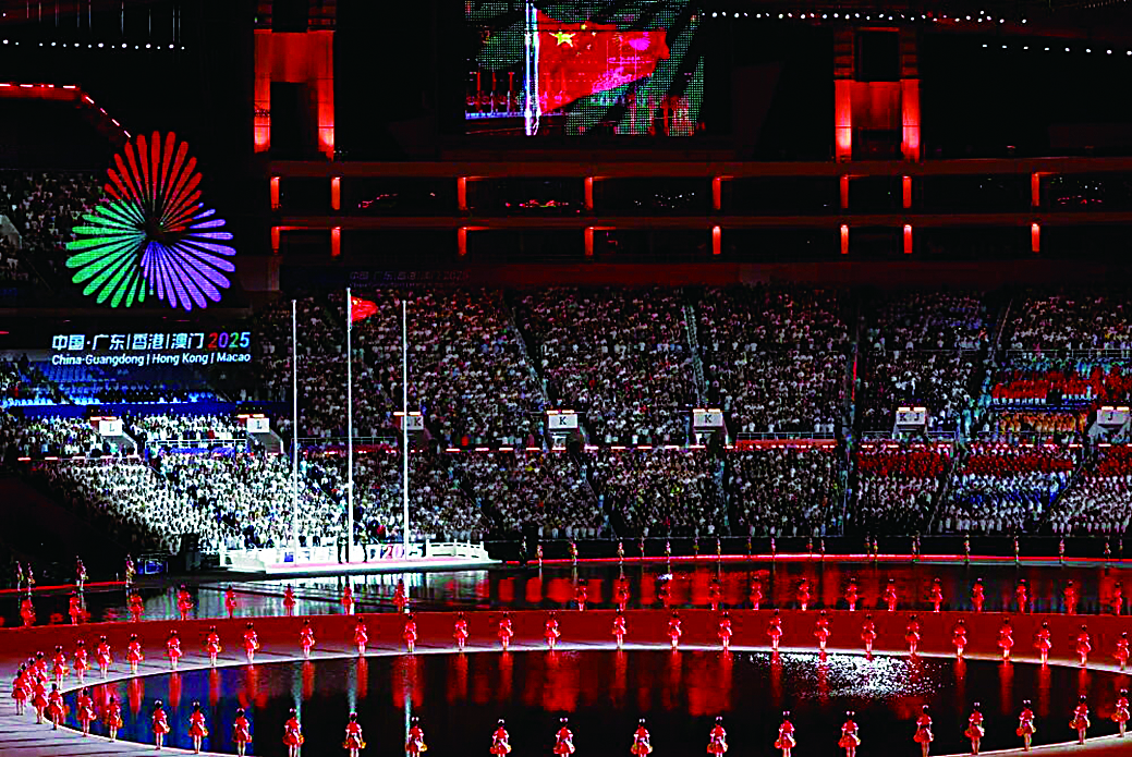 作为首次由粤港澳三地联合承办的全国运动会,开幕式巧妙融入广州“小蛮腰”、深圳“春笋”、香港维多利亚港、澳门大三巴等标志性元素,展现粤港澳大湾区互联互通的蓬勃生机。