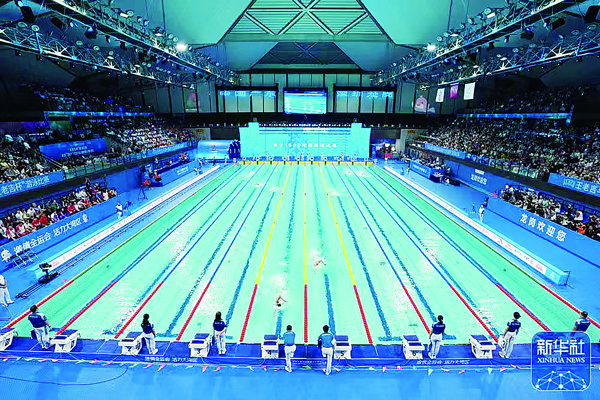 山东队张展硕再度闪耀泳池,以14分52秒73夺得男子1500米自由泳冠军,刷新个人最佳成绩(原PB为15分02秒62)。这是他在本届赛事斩获的第五金,包揽了男子200米至1500米四项中长距离冠军,成为此次全运会游泳项目金牌数最多的运动员。