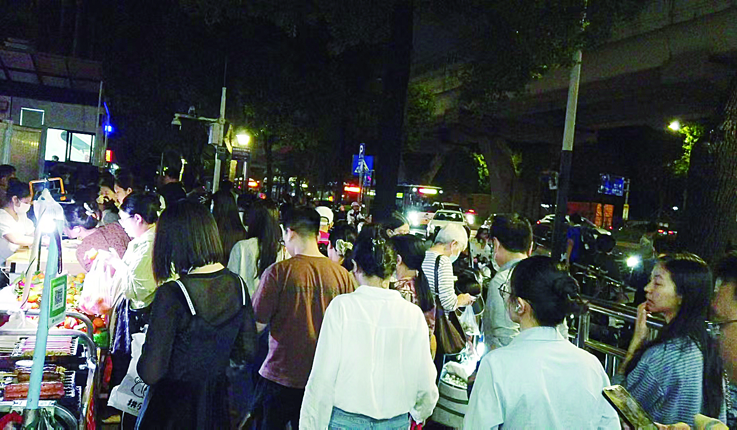 占道经营的摊贩也让环卫工人头疼:“摊贩走后,包装袋、竹签和果皮总会留下,增加了我们的工作量,也影响了环境卫生。”