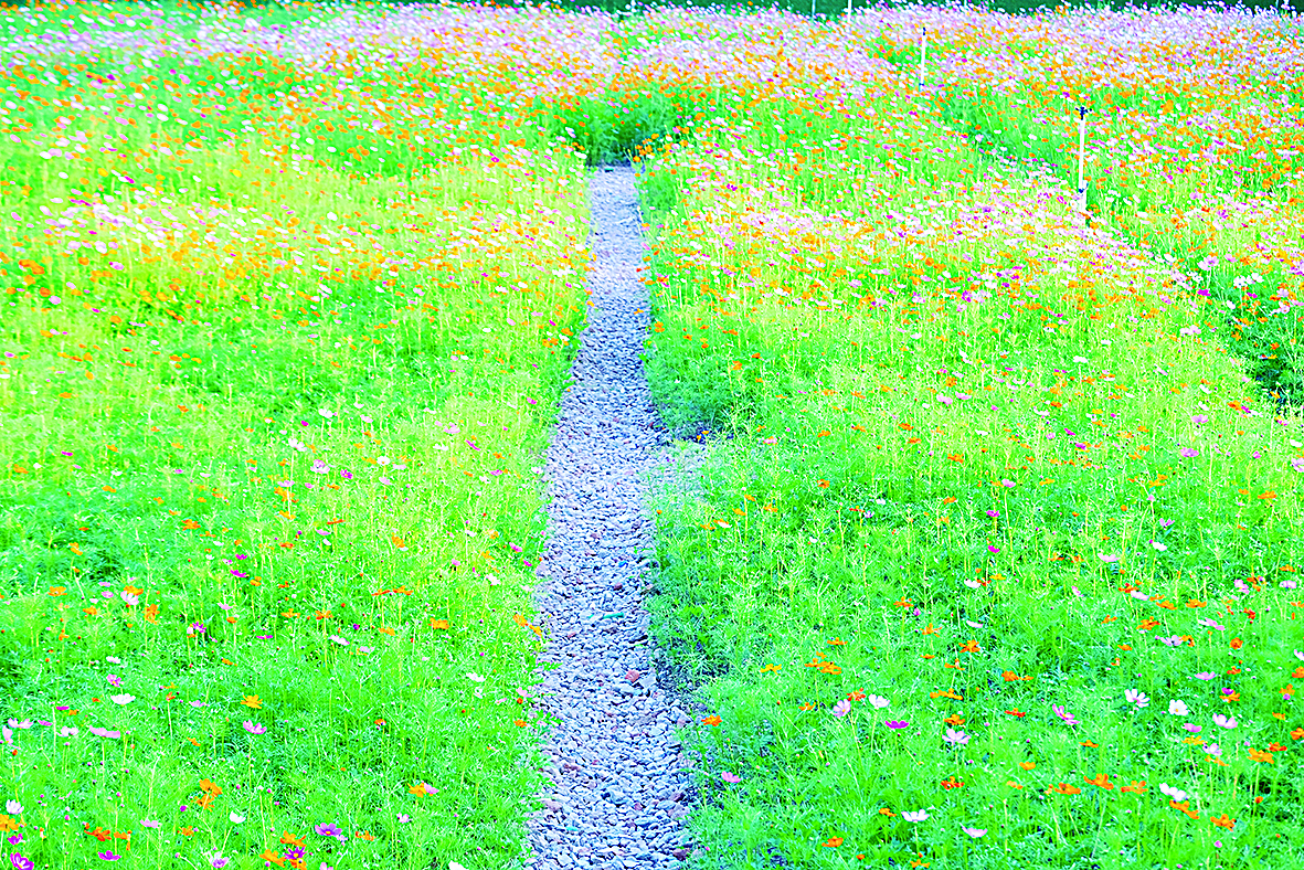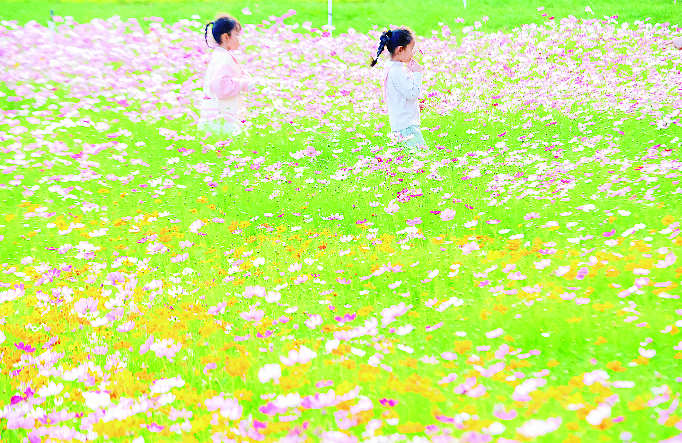 经过一段时间的精心养护,总面积约6200平方米的土地,彻底告别了过去的荒芜:缤纷的波斯菊随风摇曳,多彩的百日草热烈绽放……生机盎然、美不胜收的生态花海,给城市镶上一条绚丽的彩带,吸引了附近居民和游客。