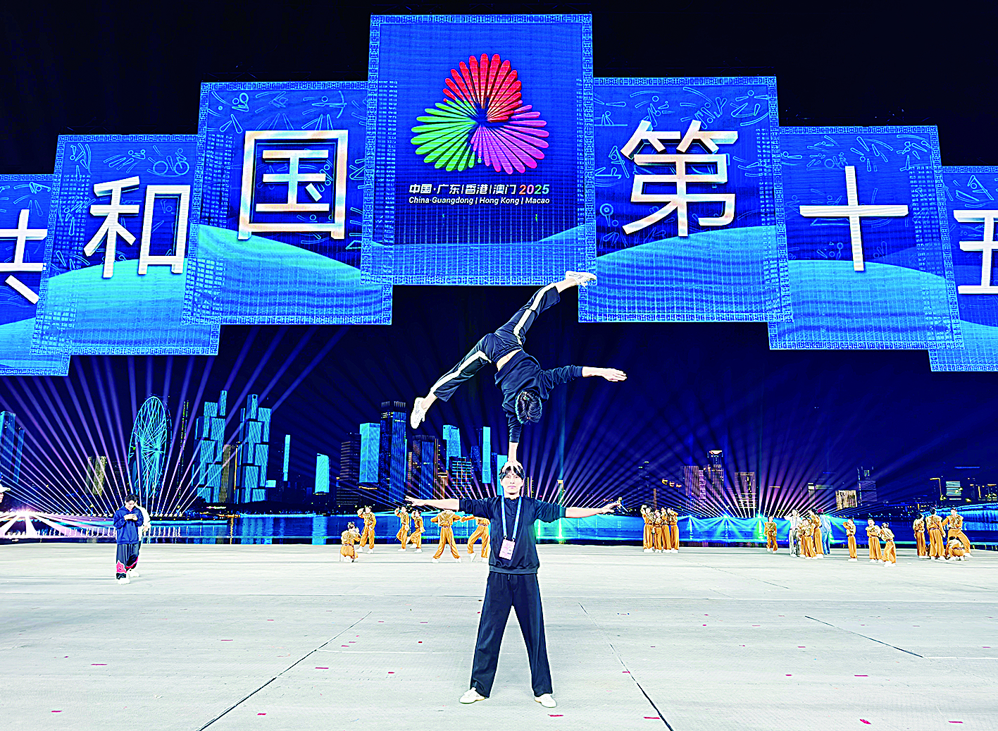 十五运会闭幕式上,15名演员用一场融合传统与现代的杂技表演,将福永杂技这一国家级非遗项目完美地呈现在全国观众面前。他们以集体柔造型展示“鹏城展翅”的意象,与“大湾鸡”共舞,将传统杂技的“柔”与现代科技的“炫”完美结合,让古老技艺跳出了“非遗博物馆”的框架,成为连接传统文化与当代审美的桥梁,在舞台上大放异彩。