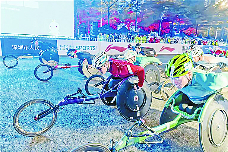 12月7日6时30分、7时30分,全国残特奥会马拉松(上图)和2025深圳马拉松(左图)分别在深圳市民中心开跑。