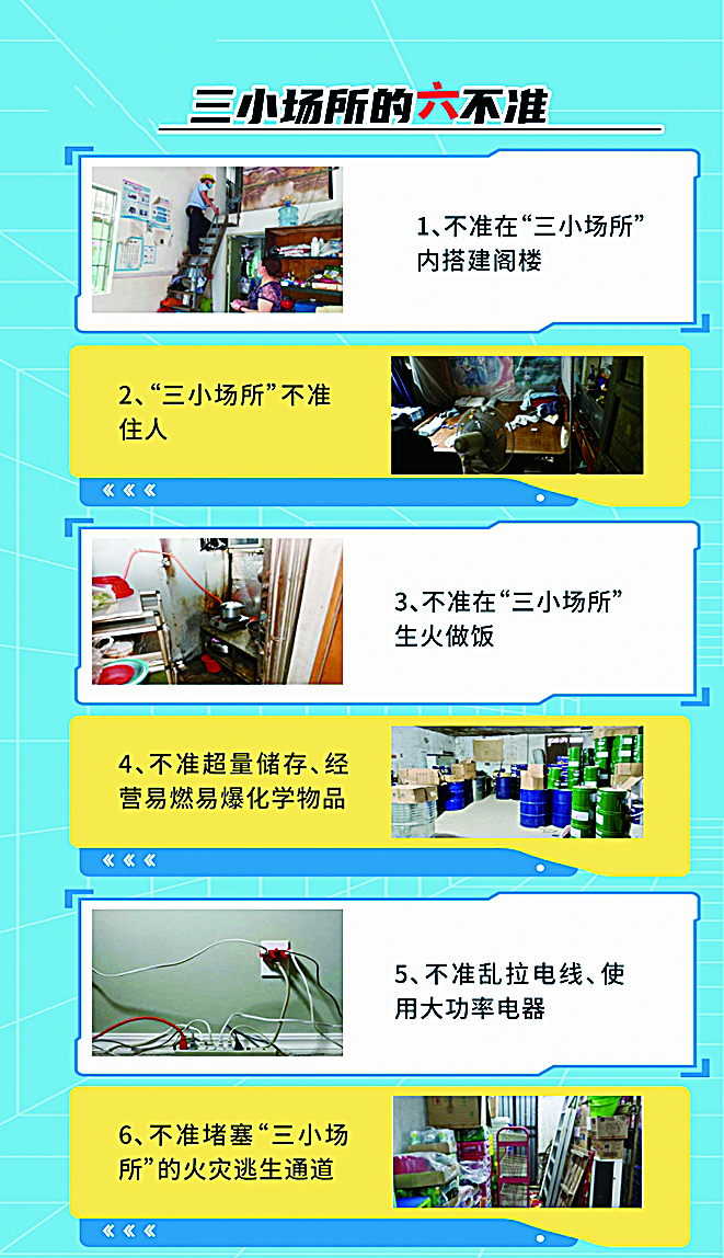 看似不起眼的“三小”场所,实则是多重火灾隐患叠加的风险点。区应急局有关负责人表示,“先天不足+后天疏忽”为“三小”场所埋下了安全隐患。